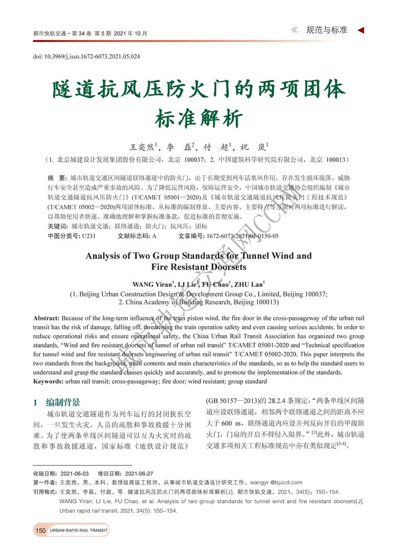 隧道抗风压防火门的两项团体标准解析