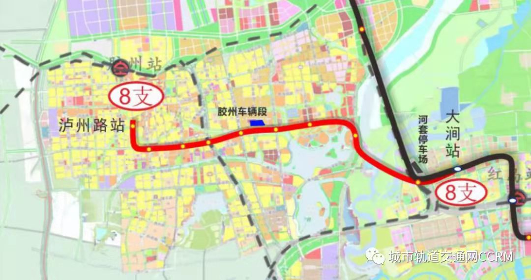 青岛市地铁8号线支线工程东起8号线主支线接轨站大涧站,西至胶州火车站。线路途经青岛市城阳区和胶州市,串联红岛经济区、少海新城和胶州市主城区,主要沿正阳西路、规划营旧路、云泰路、扬州东路和杭州路敷设。线路全长20.4km,均为地下线。全线共设车站12座,设换乘站4座,分别在大涧站与既有8号线换乘,在站前大道站与规划12号线换乘,在福州南路站和兰州西路站与规划10号线换乘。