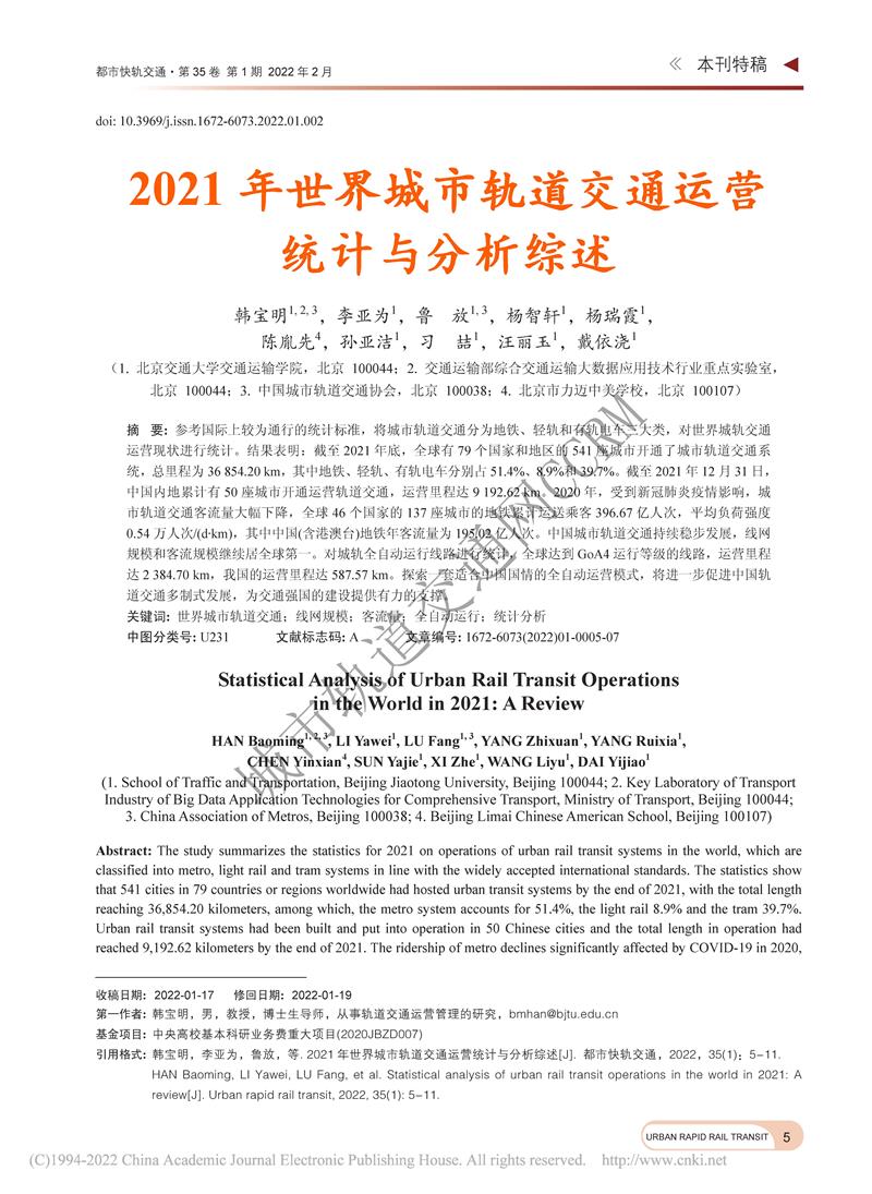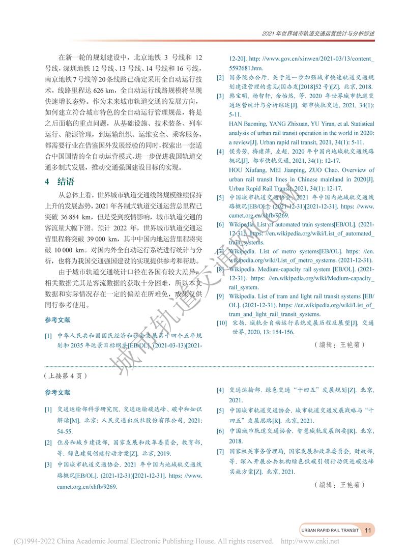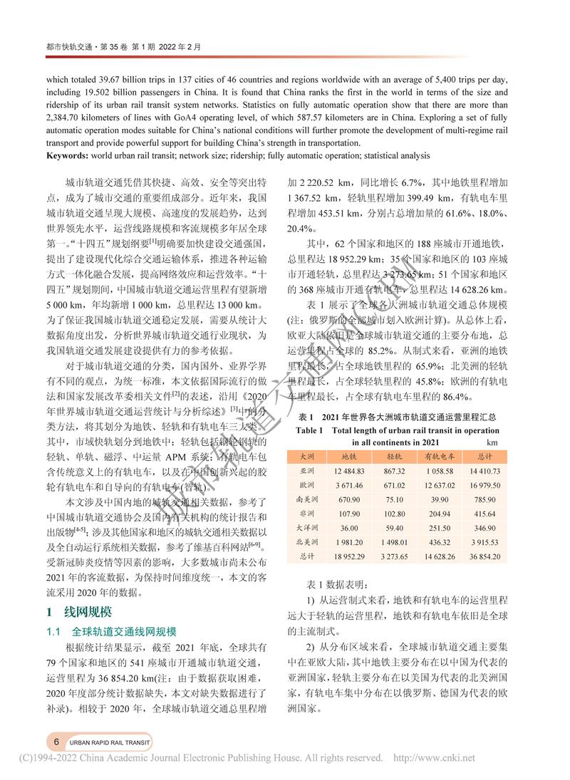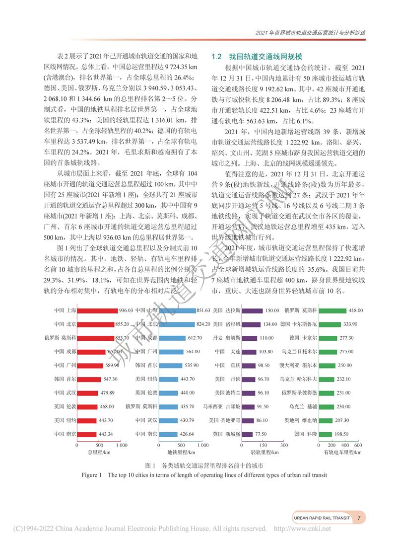 2021年世界城市轨道交通运营统计与分析综述