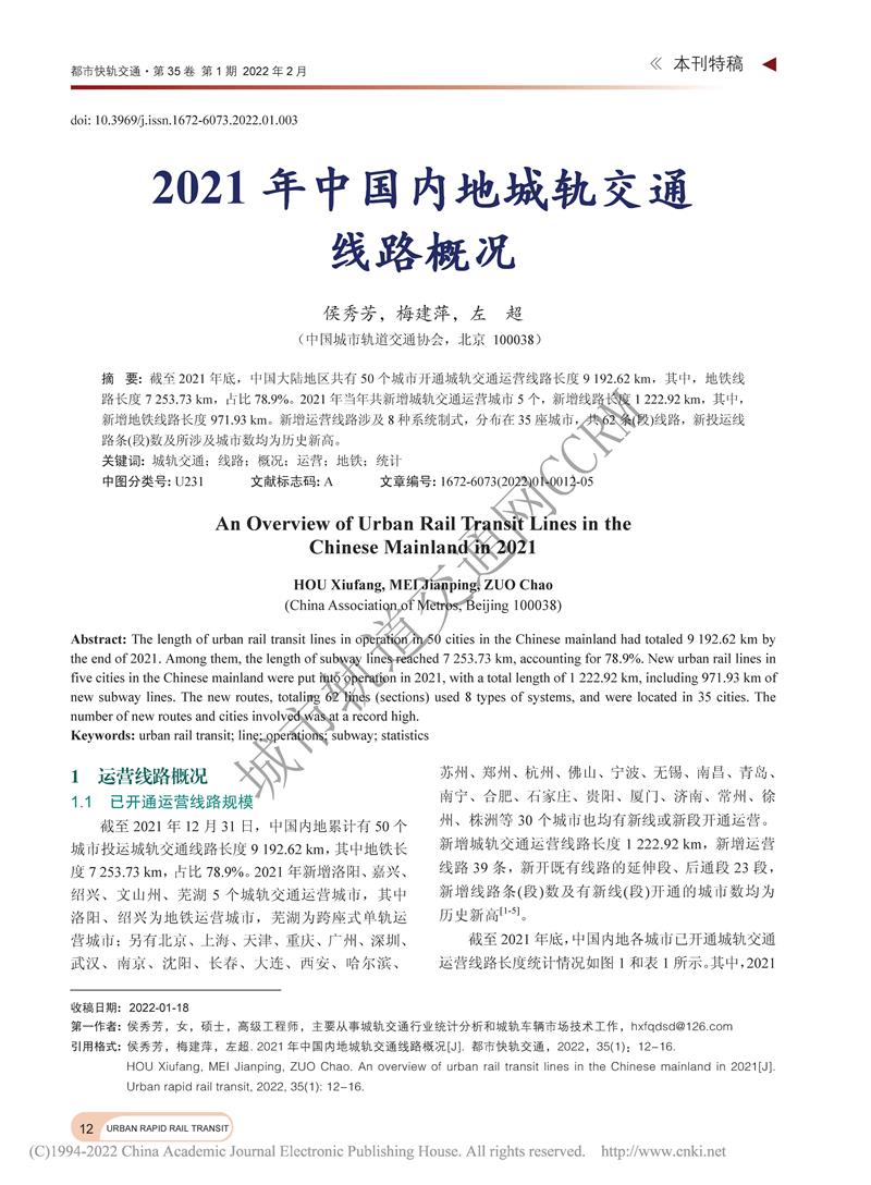上一条:2021年世界城市轨道交通运营统计与分析综述