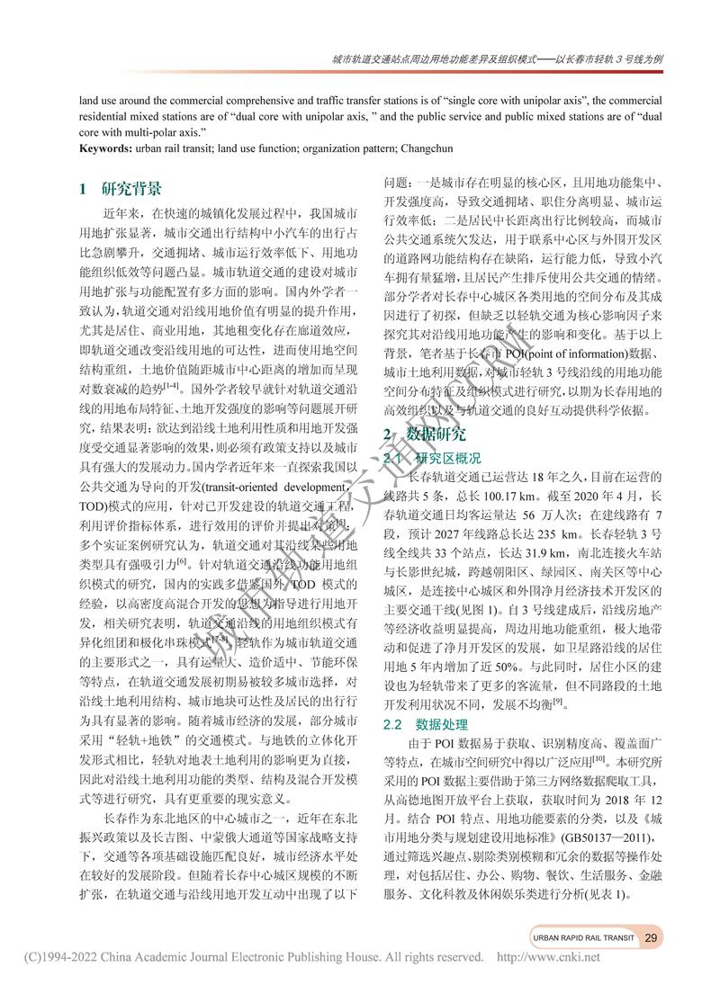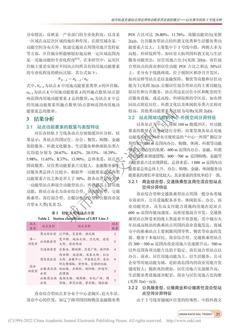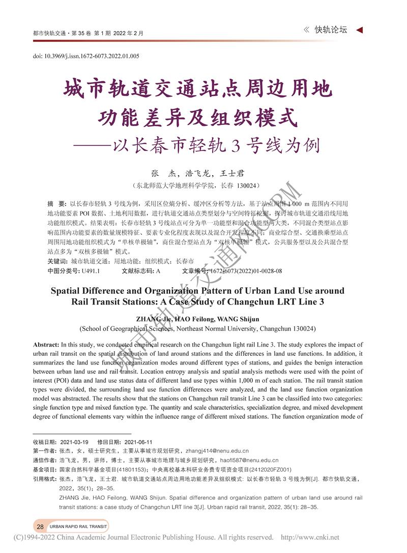 城市轨道交通站点周边用地功能差异及组织模式-以长春市轻轨3号线为例