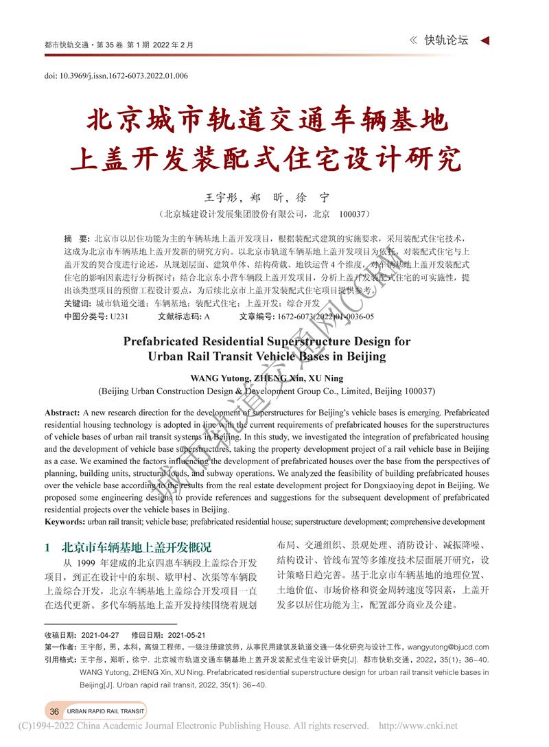 北京城市轨道交通车辆基地上盖开发装配式住宅设计研究