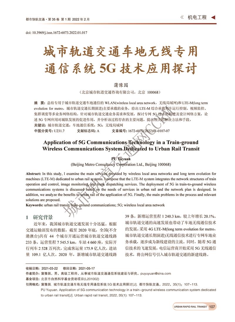 城市轨道交通车地无线专用通信系统5G技术应用探讨