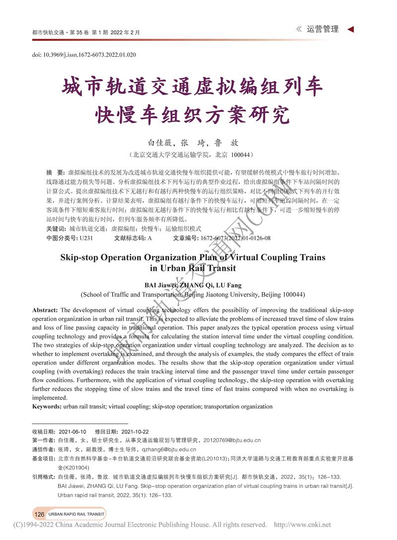 城市轨道交通虚拟编组列车快慢车组织方案研究