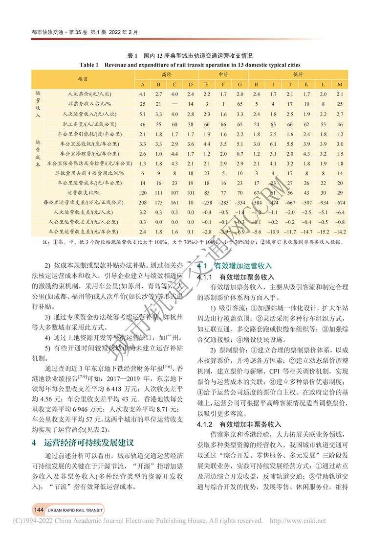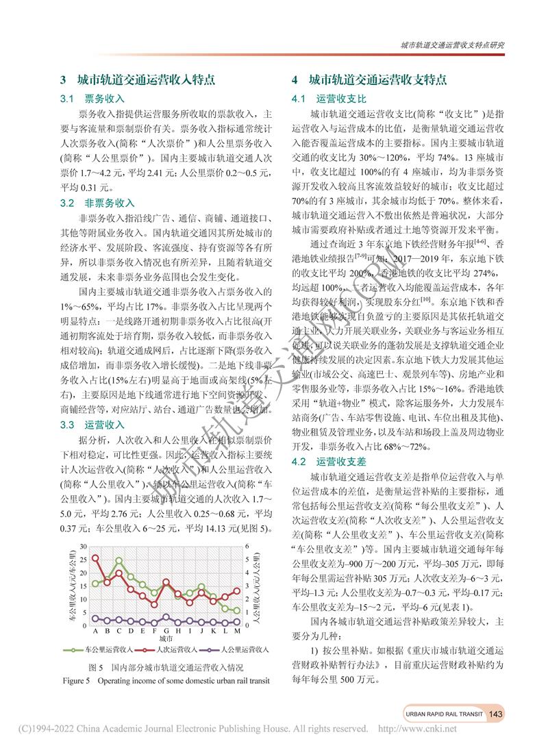 城市轨道交通运营收支特点研究