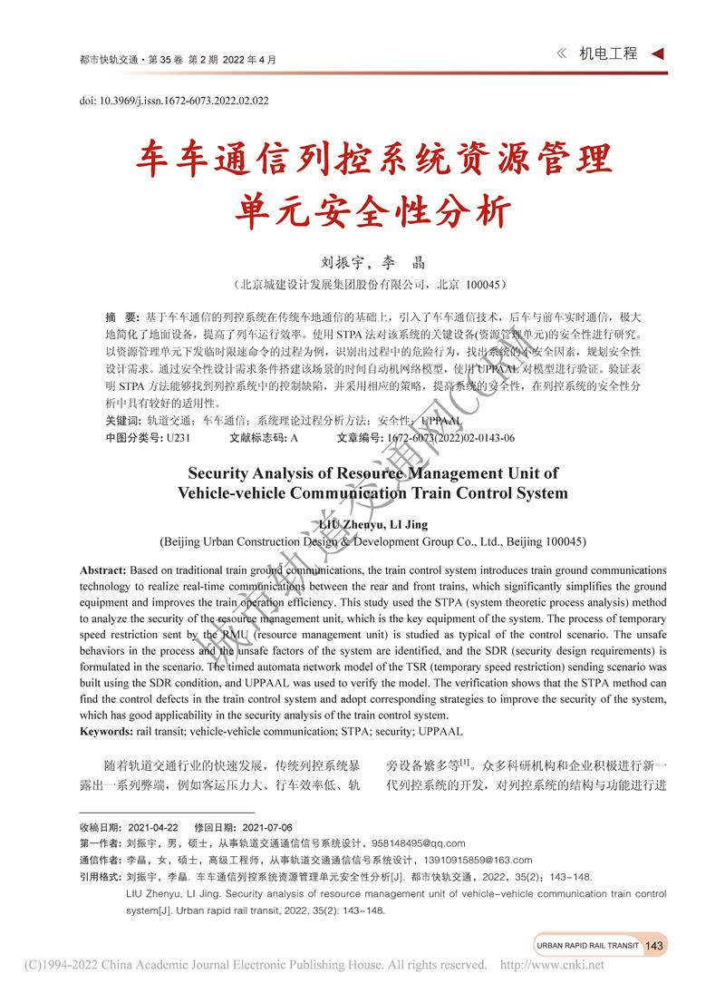 车车通信列控系统资源管理单元安全性分析