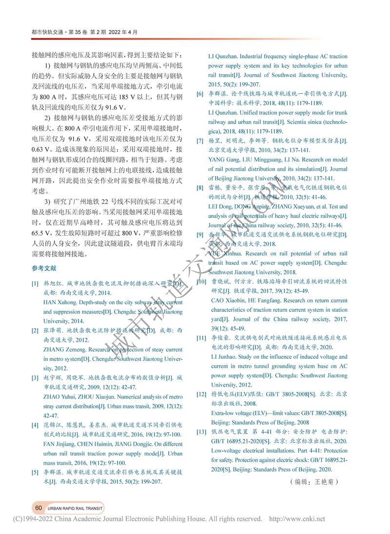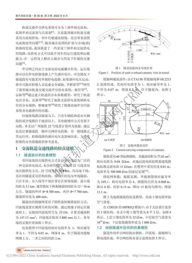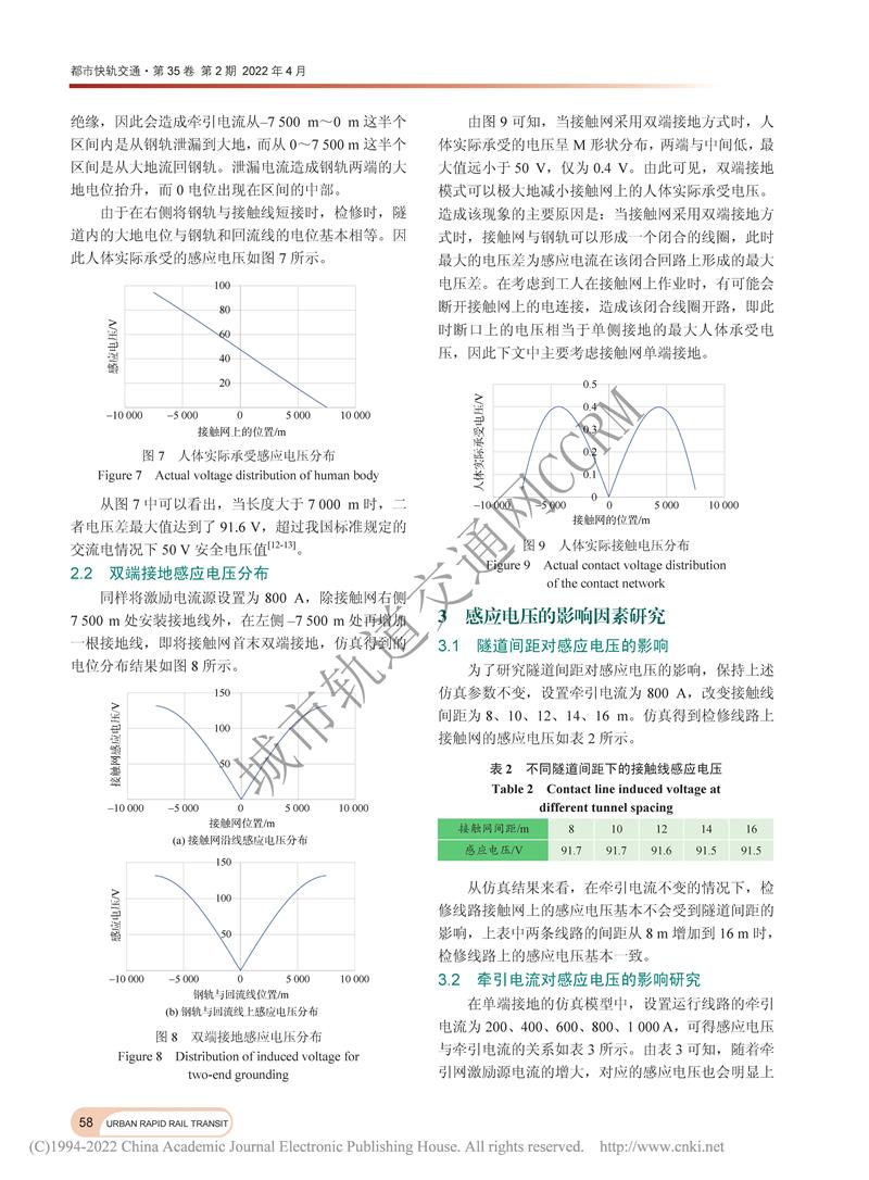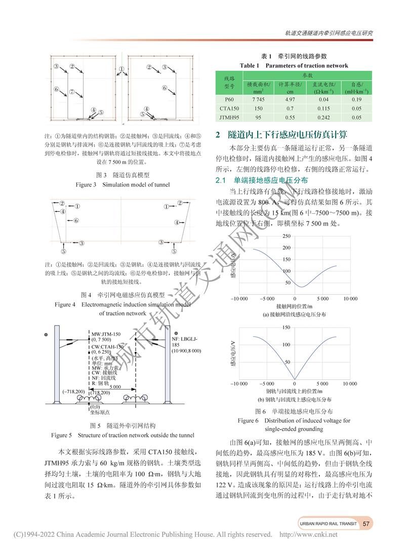 轨道交通隧道内牵引网感应电压研究
