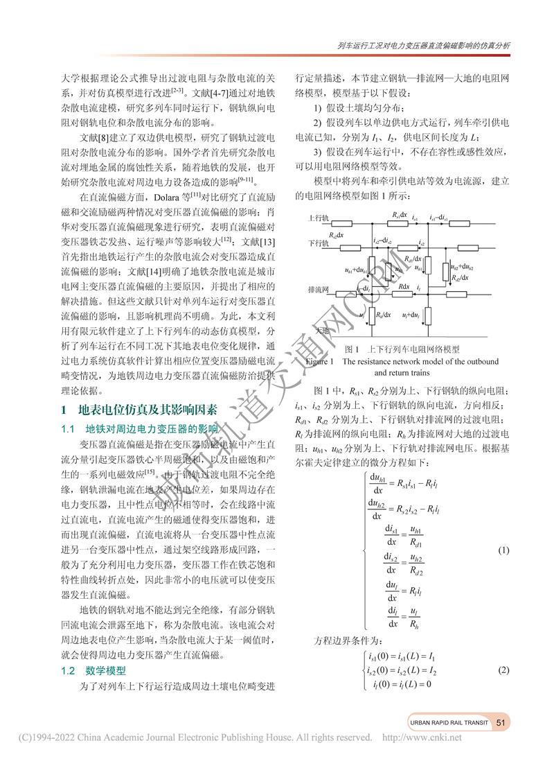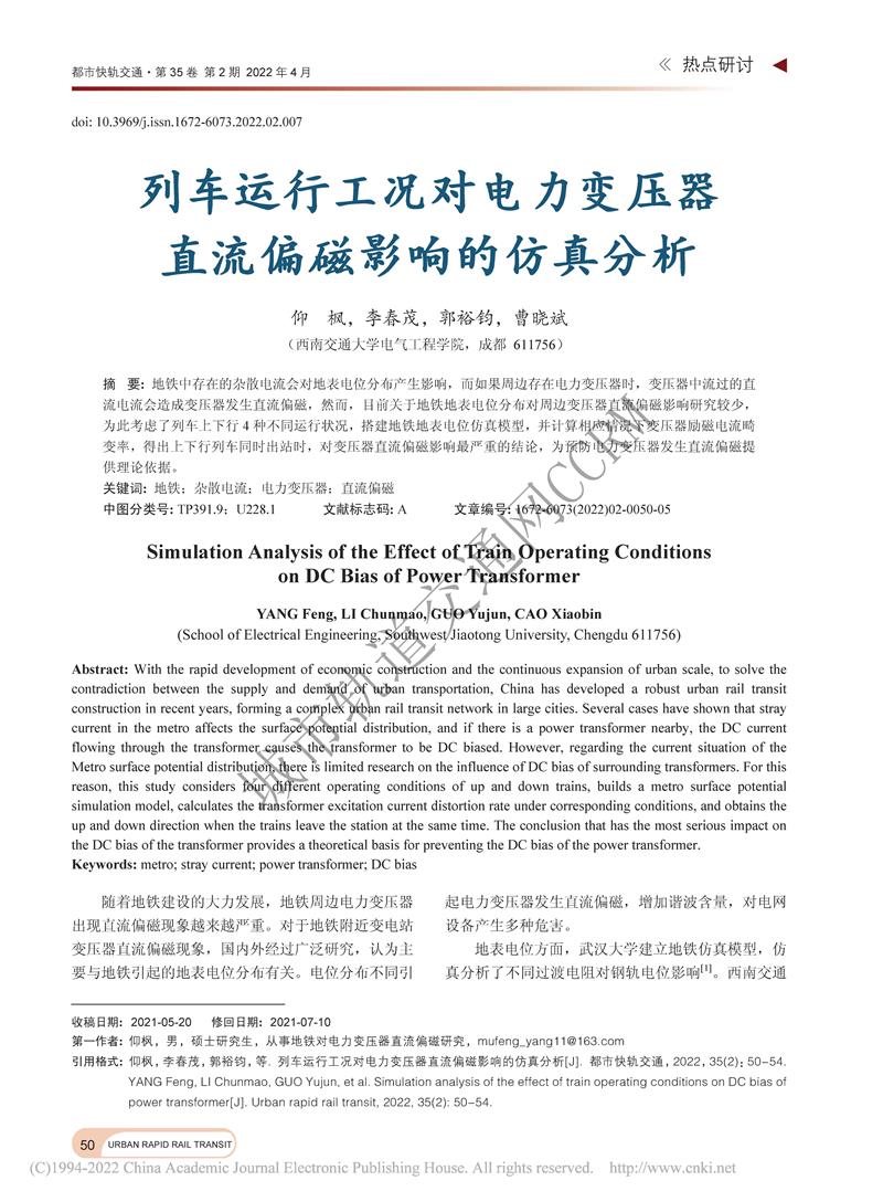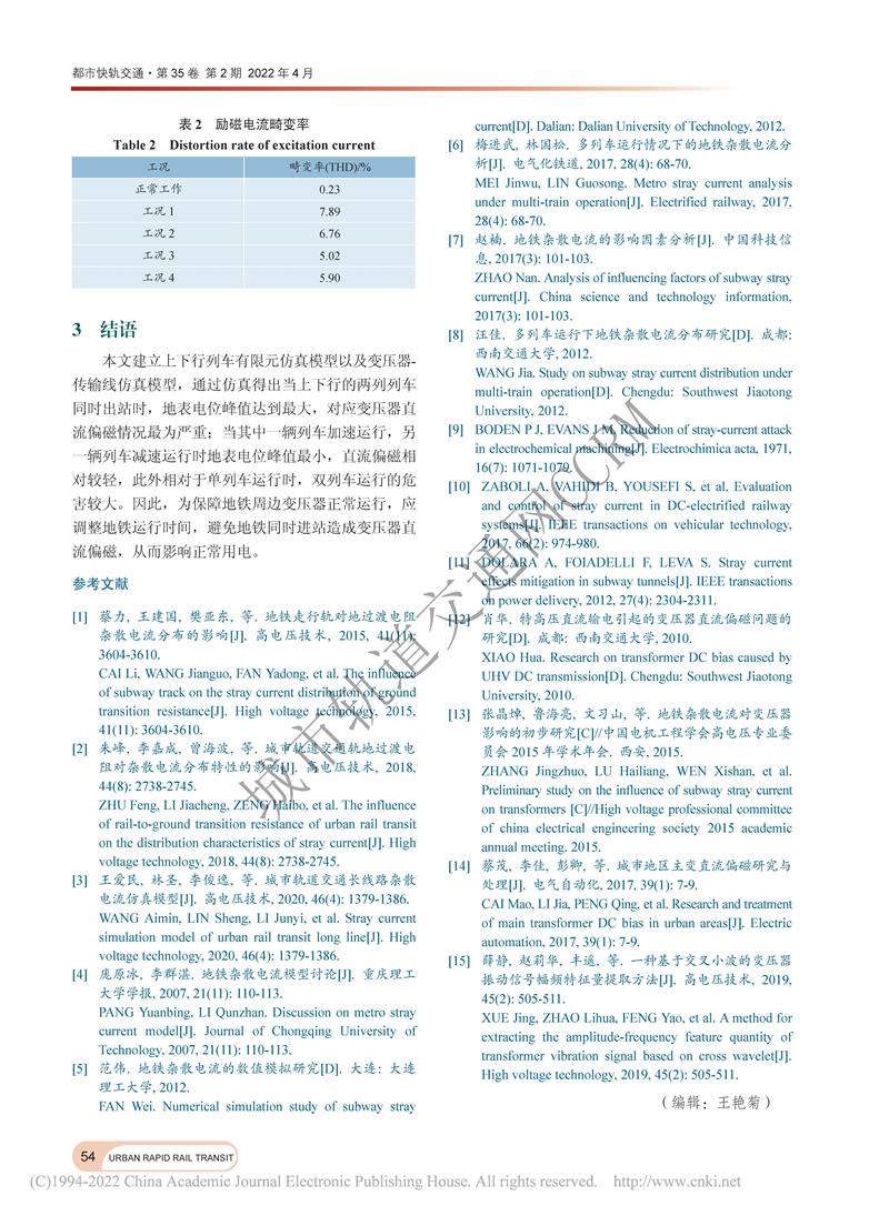 列车运行工况对电力变压器直流偏磁影响的仿真分析