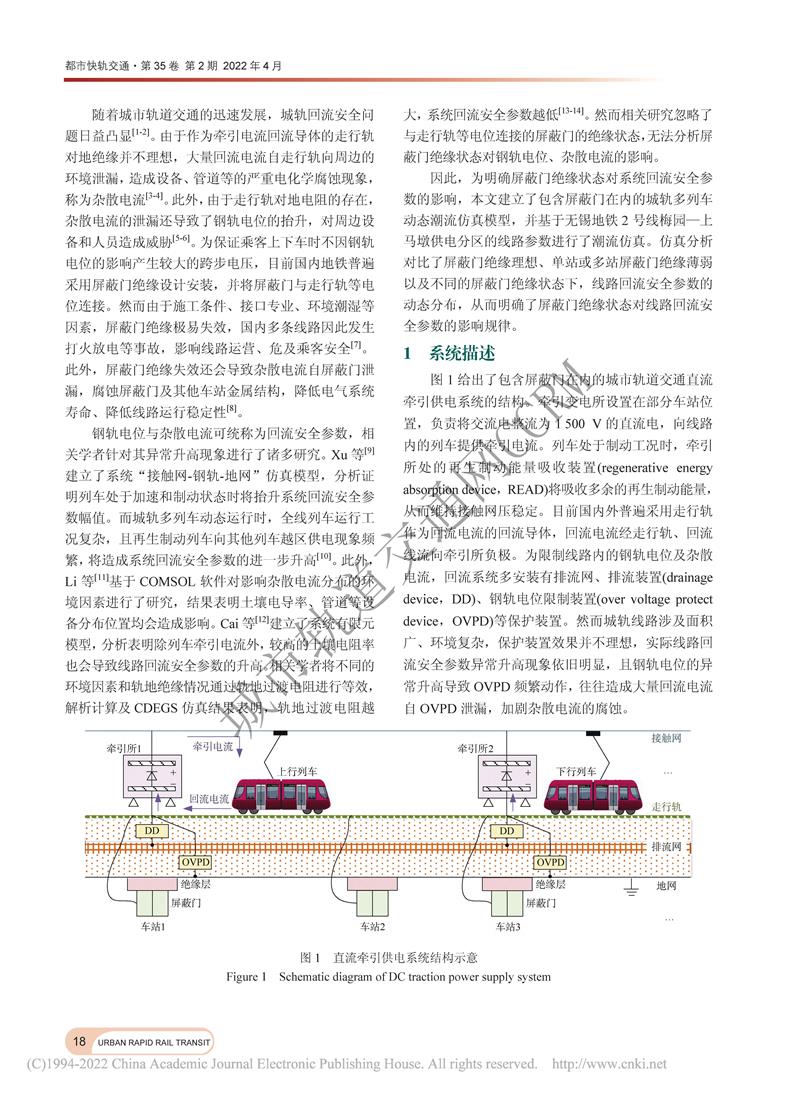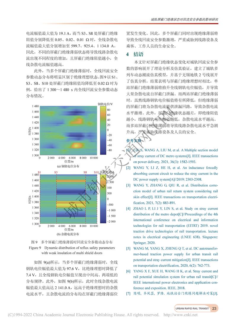 城轨屏蔽门绝缘状态对回流安全参数的影响研究