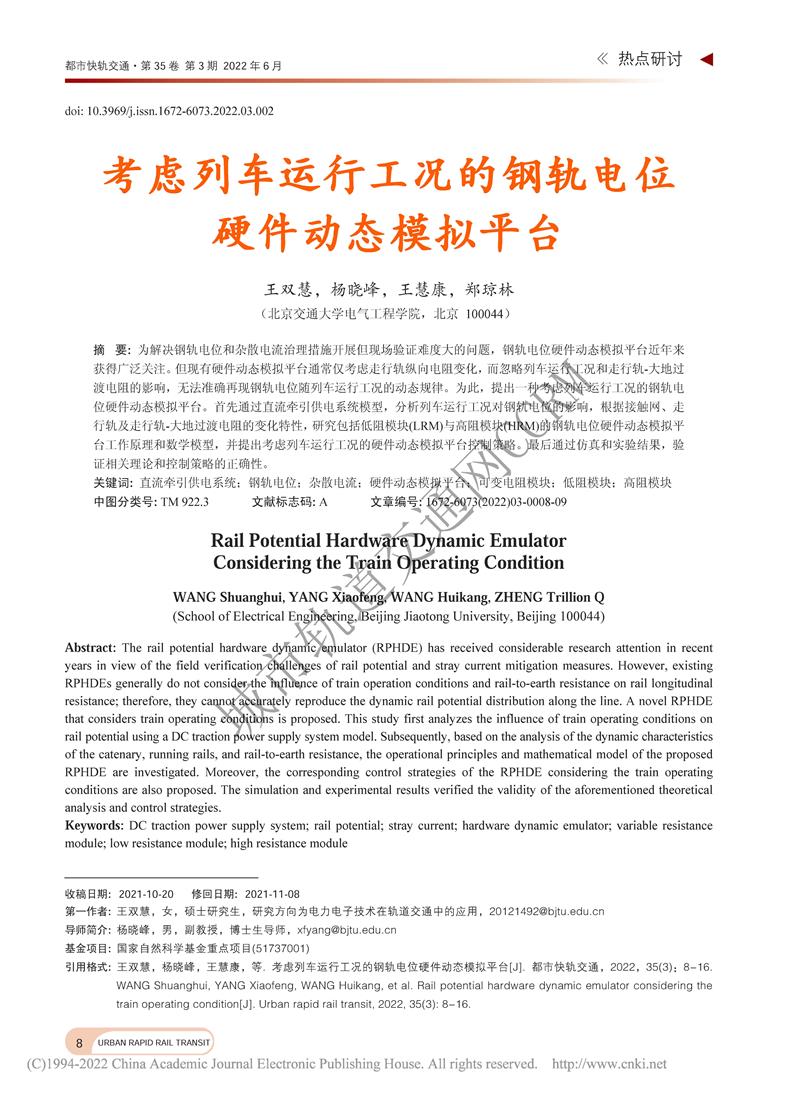 考虑列车运行工况的钢轨电位硬件动态模拟平台