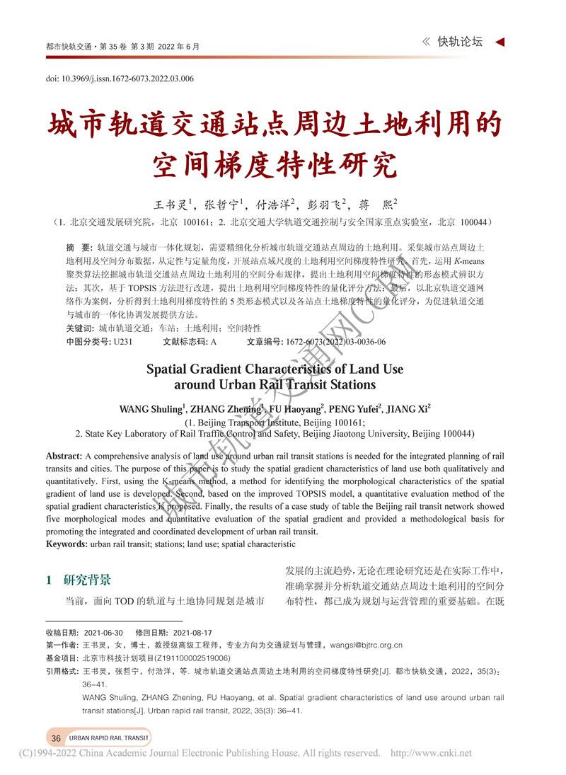 城市轨道交通站点周边土地利用的空间梯度特性研究