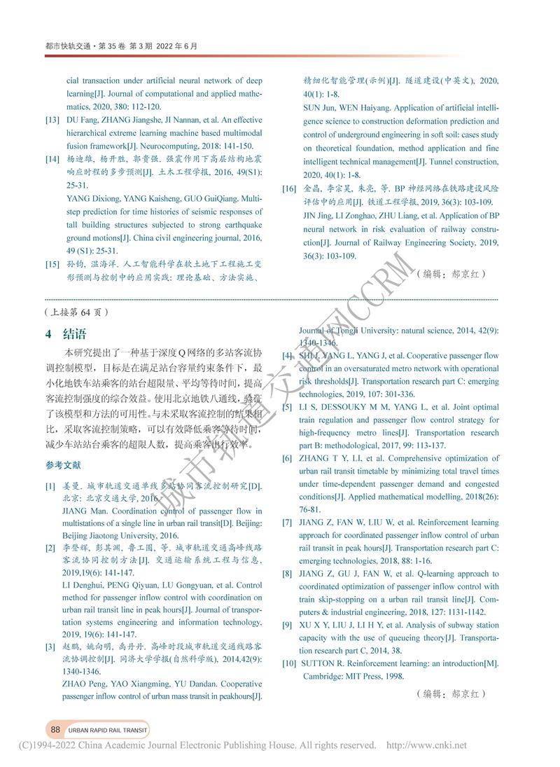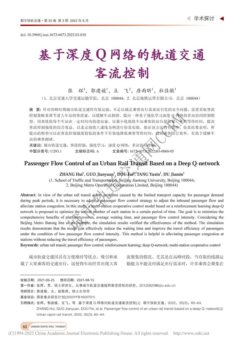 基于深度Q网络的轨道交通客流控制