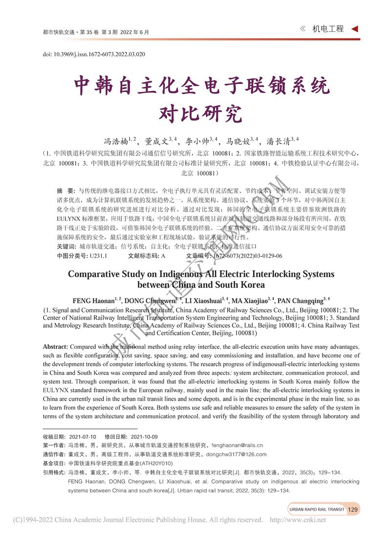 中韩自主化全电子联锁系统对比研究