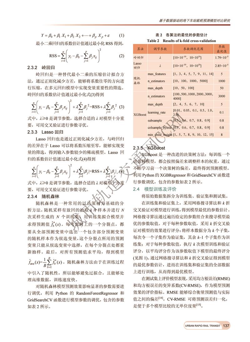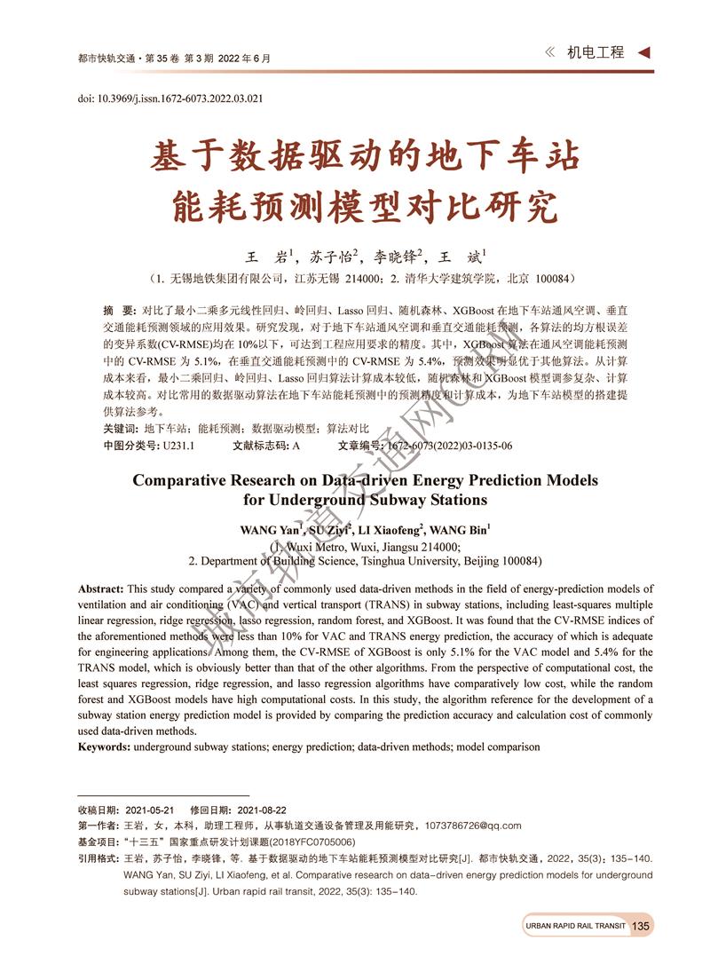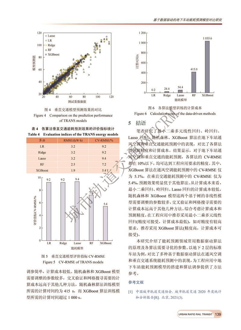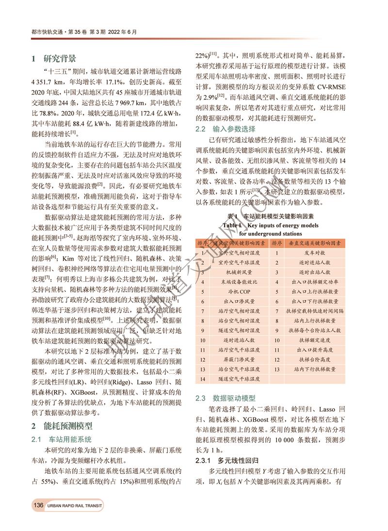 基于数据驱动的地下车站能耗预测模型对比研究