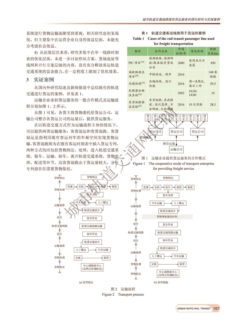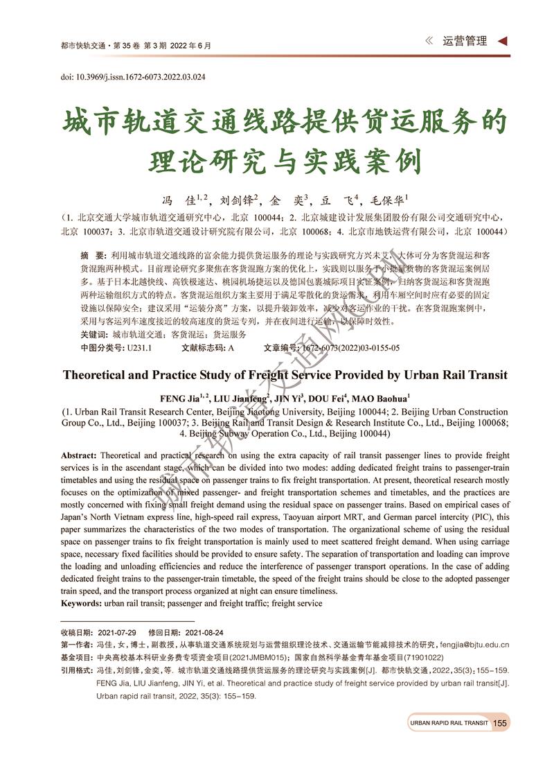 城市轨道交通线路提供贷运服务的理论研究与实践案例