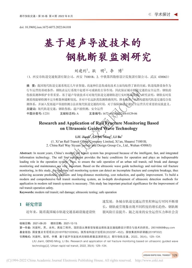 基于超声导波技术的钢轨断裂监测研究