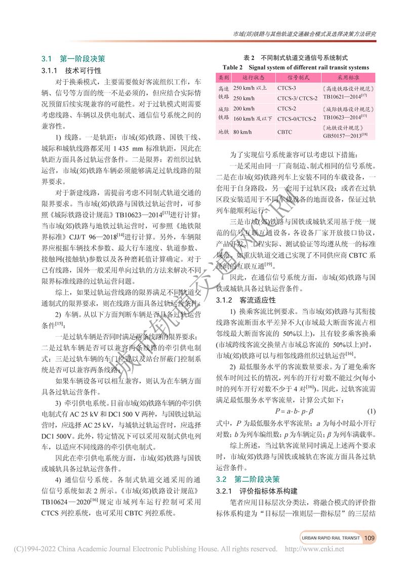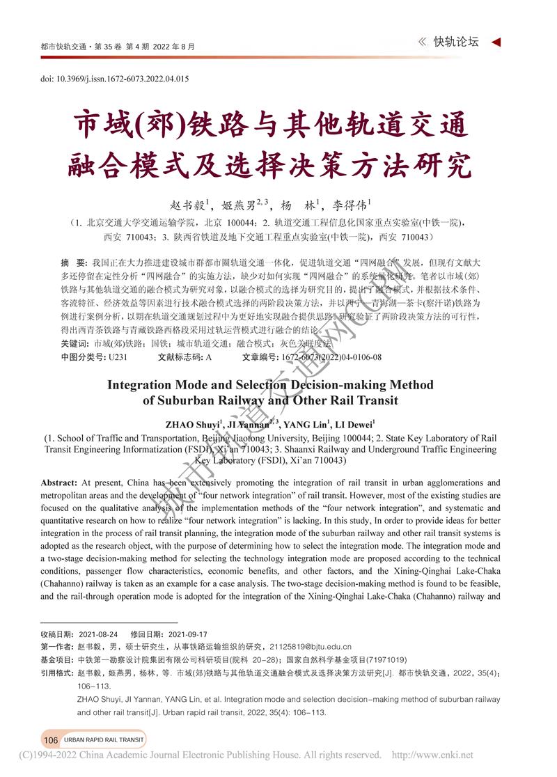 市域(郊)铁路与其他轨道交通融合模式及选择决策方法研究