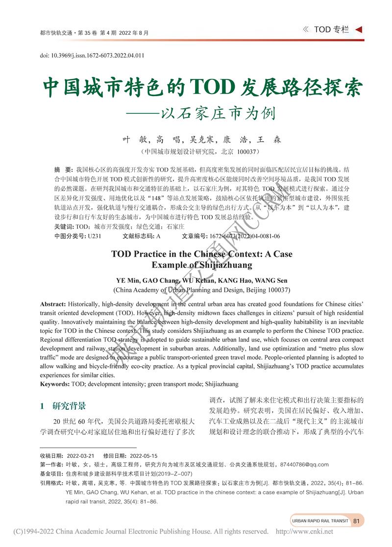 中国城市特色的TOD发展路径探索—以石家庄市为例