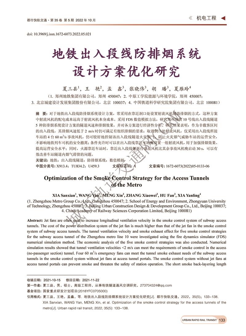地铁出入段线防排烟系统设计方案优化研究