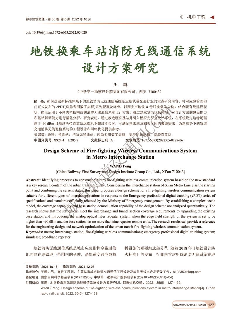 地铁换乘车站消防无线通信系统设计方案研究