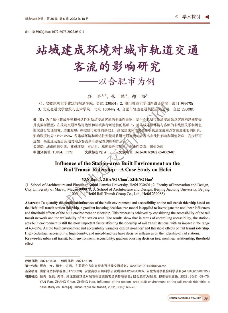 站域建成环境对城市轨道交通客流的影响研究