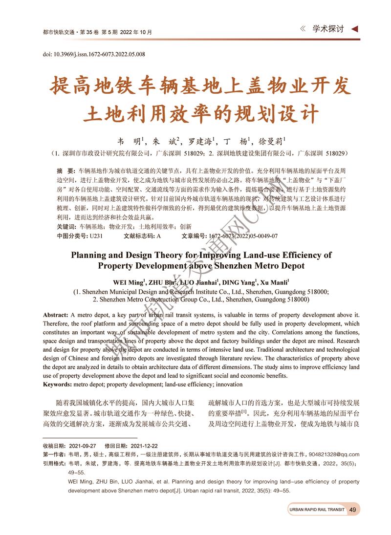 提高地铁车辆基地上盖物业开发土地利用效率的规划设计