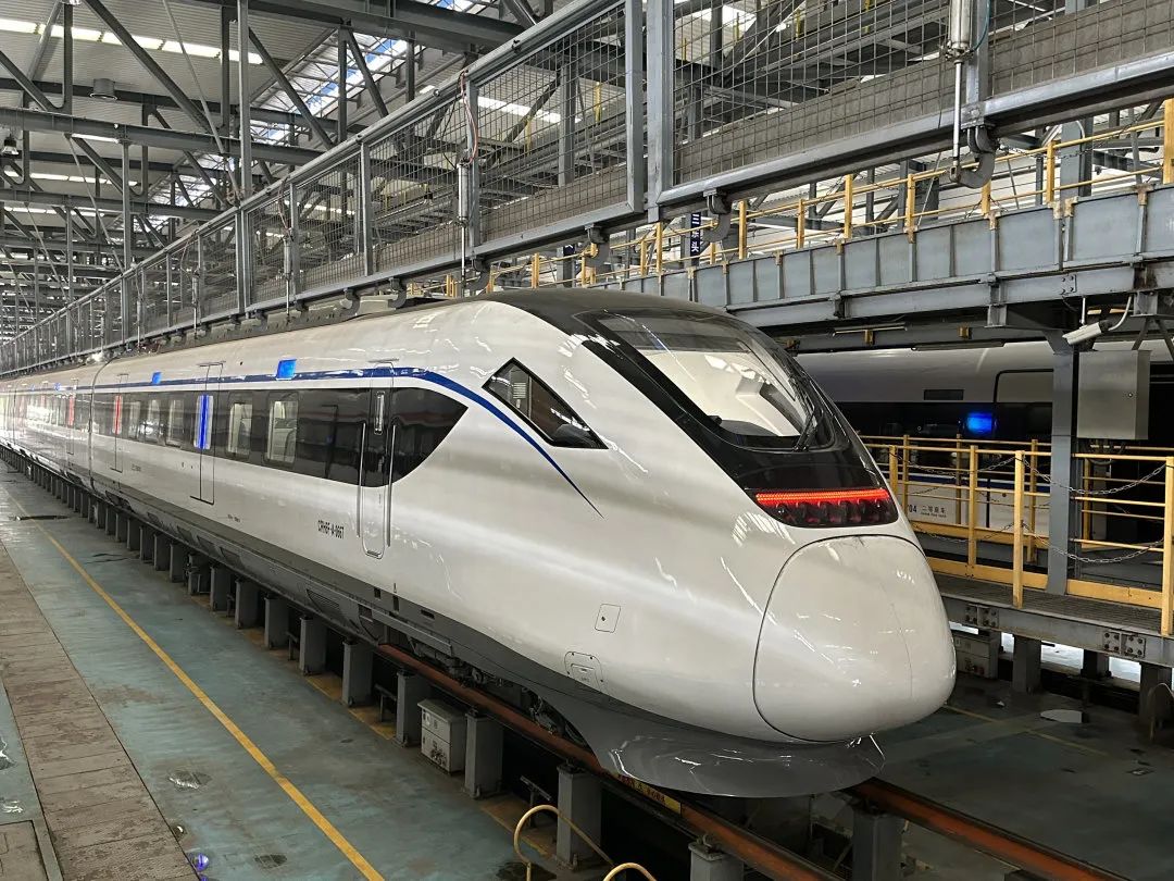 2023年3月17日20:15,伴随着绿色的出库信号灯点亮,停放在佛肇城际佛山西城际动车所内的CRH6A-A-0664动车组缓缓启动,经过4个多小时的回送路程,3月18日0:53,该列四编组动车组稳稳停放在广清城际龙塘动车所内,这标志着珠三角公司首批四编组动车组跨国铁成功回送,并将在广清、广州东环城际配合开展四编组动车组列车运营调试。