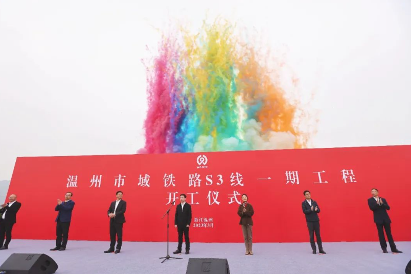 仪式最后,朱三平向在场全体人员宣布温州市域铁路S3线一期工程正式开工。在彩烟升起,热烈的掌声中,现场挖掘机整齐划一,同步下铲动土,将本次开工仪式推向了高潮。