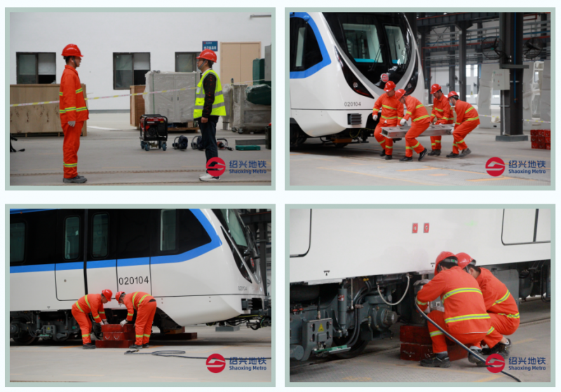 开展各项应急演练,是2号线一期开通运营筹备工作的重要内容。此次应急演练,通过模拟列车在万绣路车辆基地进行调车作业时发生冲突、脱轨场景,触发相关列车起复应急处理程序,检验在列车冲突、脱轨情况下运营人员、设备、规章的总体协调及应对能力。随着司机向检修调度员报告列车脱轨,演练正式拉开了序幕。根据“统一指挥,逐级负责”的原则,参演人员在作业组组长的具体指挥下,按照演练方案进行操作。车辆救援队在接到救援命令后快速响应,快速有序运输和安装复轨设备,整个演练过程有条不紊。