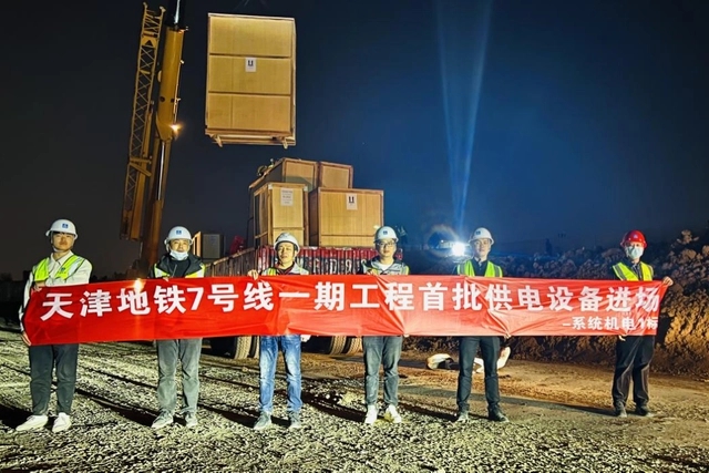 近日,由中建基础牵头,中建五局参建的天津地铁7号线系统机电1标赛达路站供电设备吊装进场,开始进入变电设备安装阶段,项目正线全面施工的号角已然吹响。