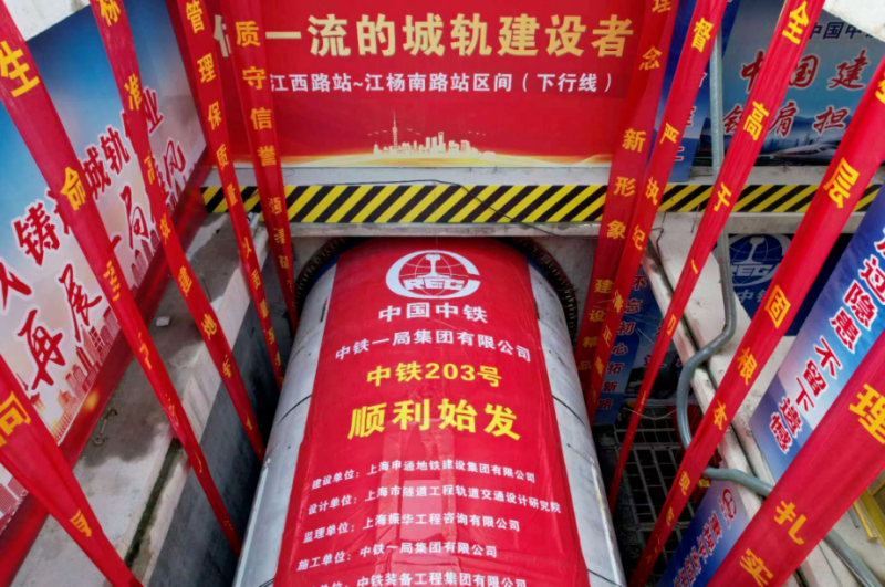 5月5日上午,伴随着中铁203号盾构机刀盘缓缓启动,上海轨道交通18号线二期工程土建1标长江西路站~江杨南路站区间下行线盾构顺利始发。在前期充足的准备下,盾构机运行稳定,缓缓向前推进。