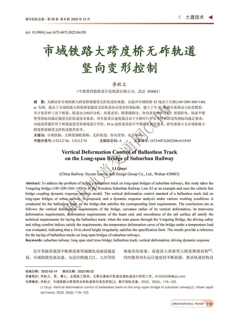 市域铁路大跨度桥无砟轨道竖向变形控制