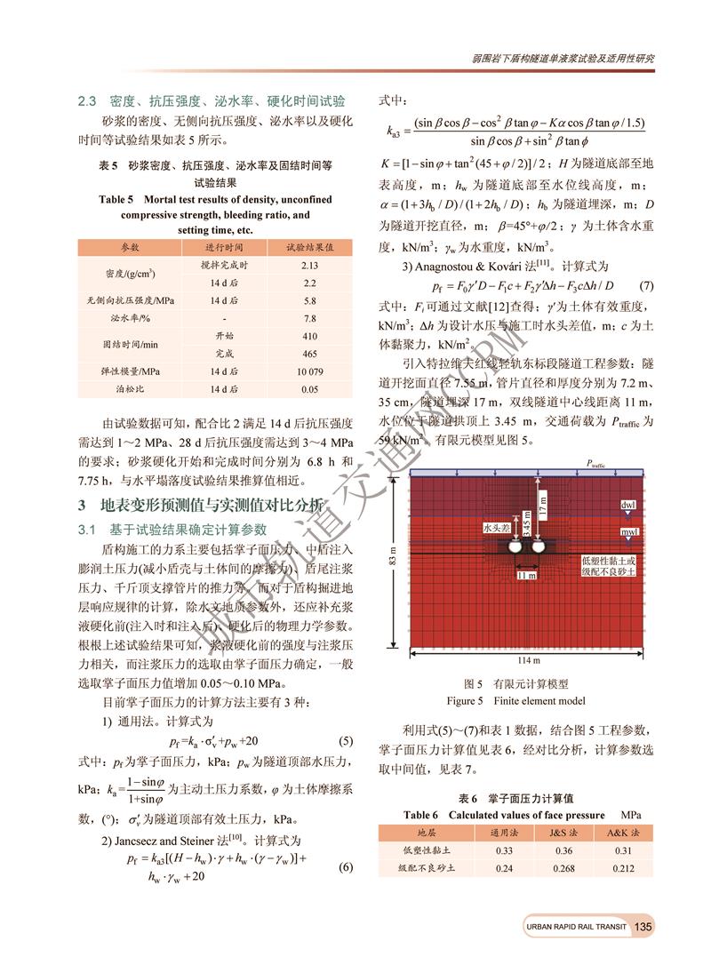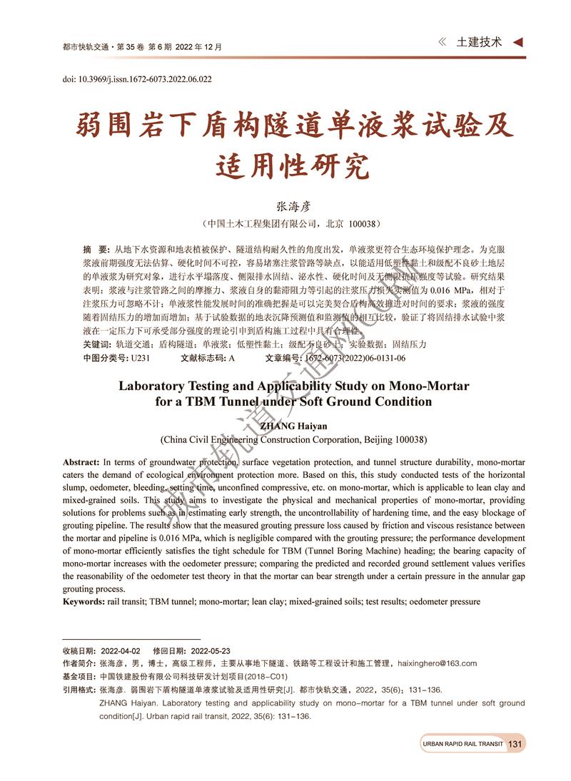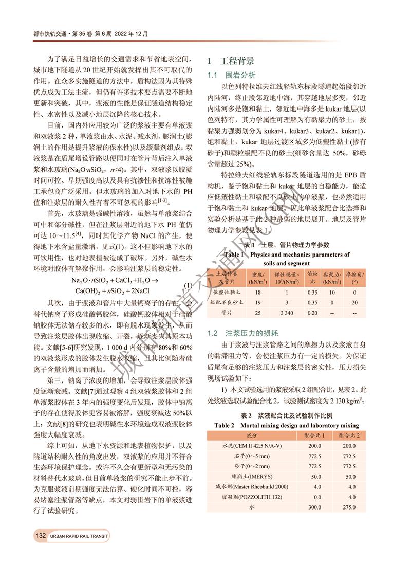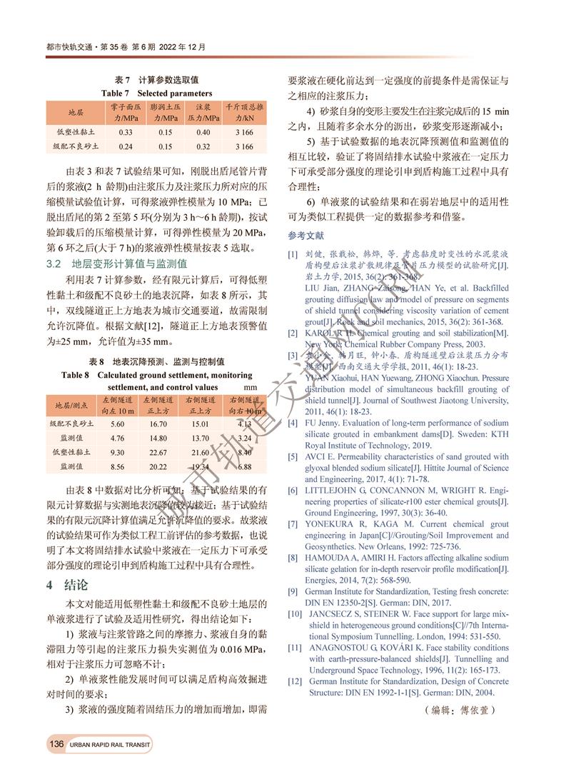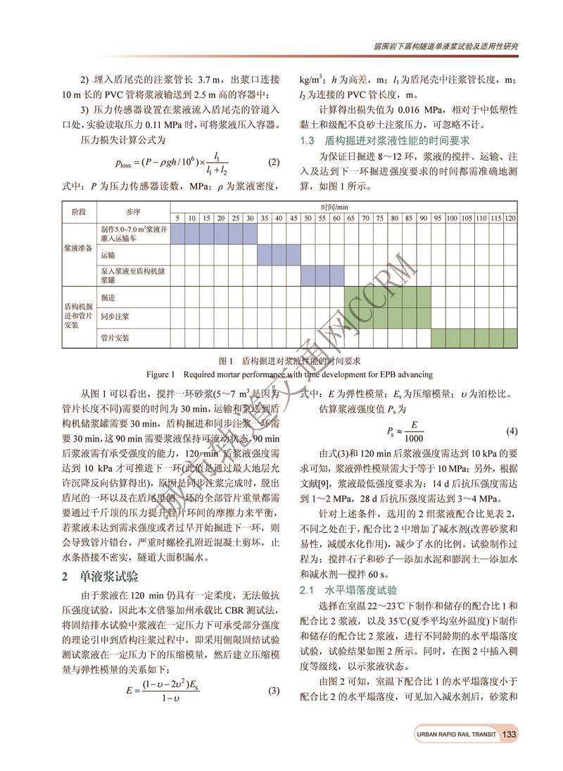 弱围岩下盾构隧道单液浆试验及适用性研究