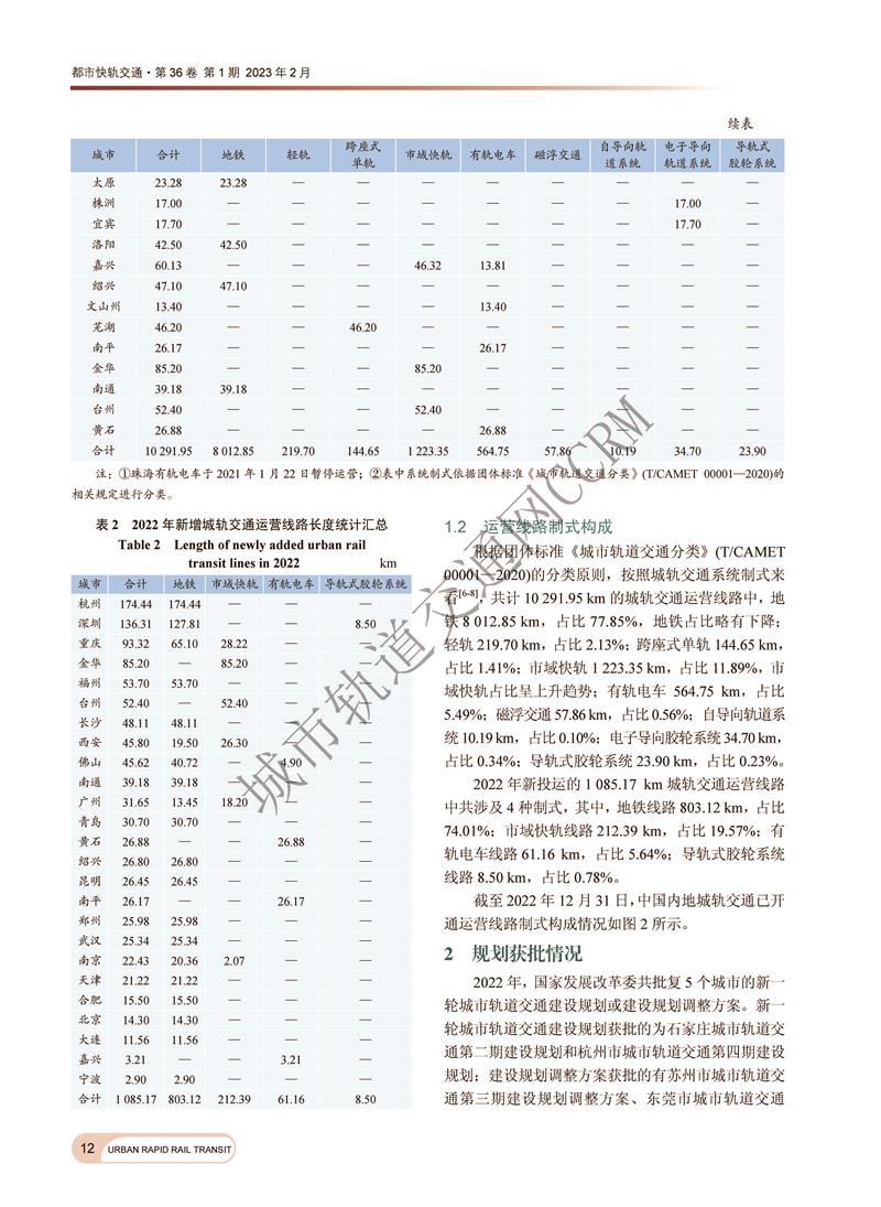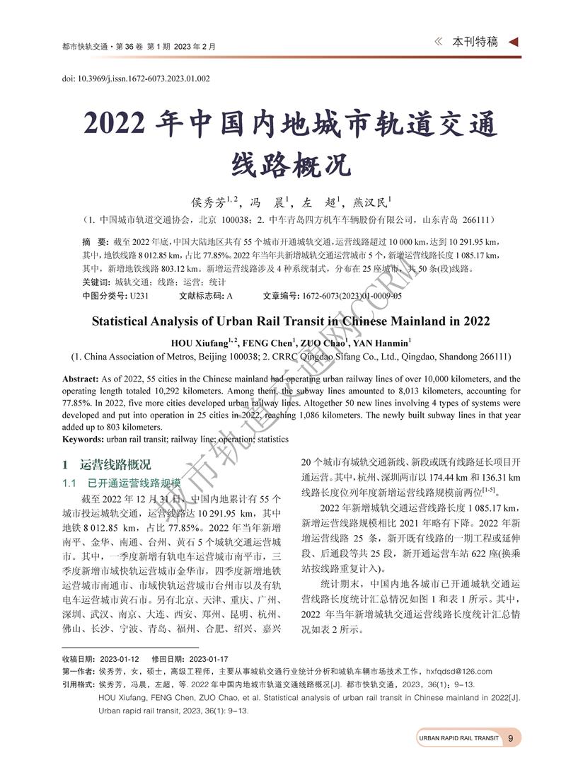 2022年中国内地城市轨道交通线路概况