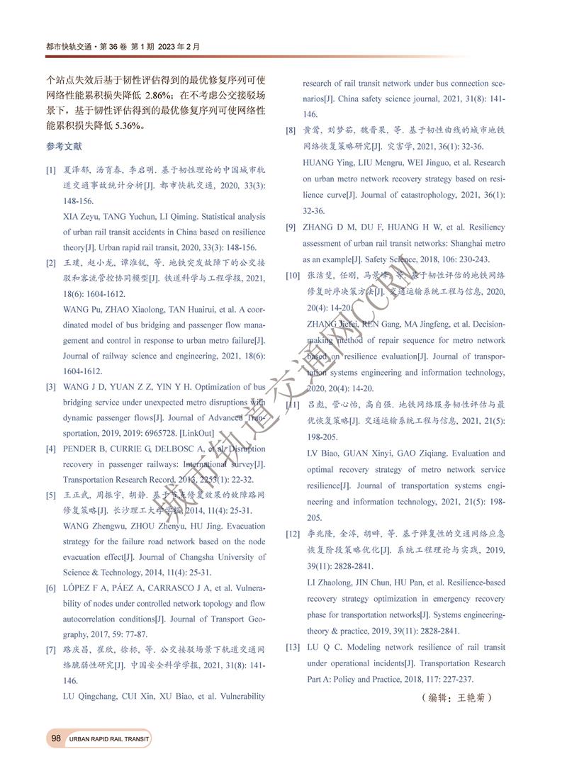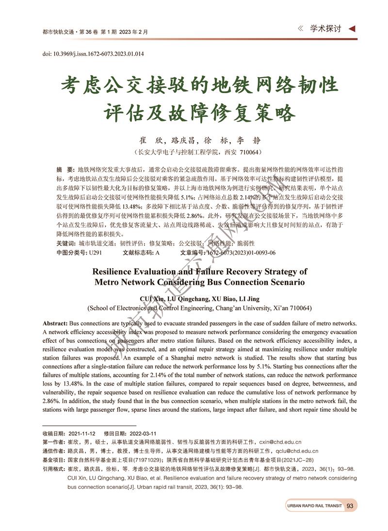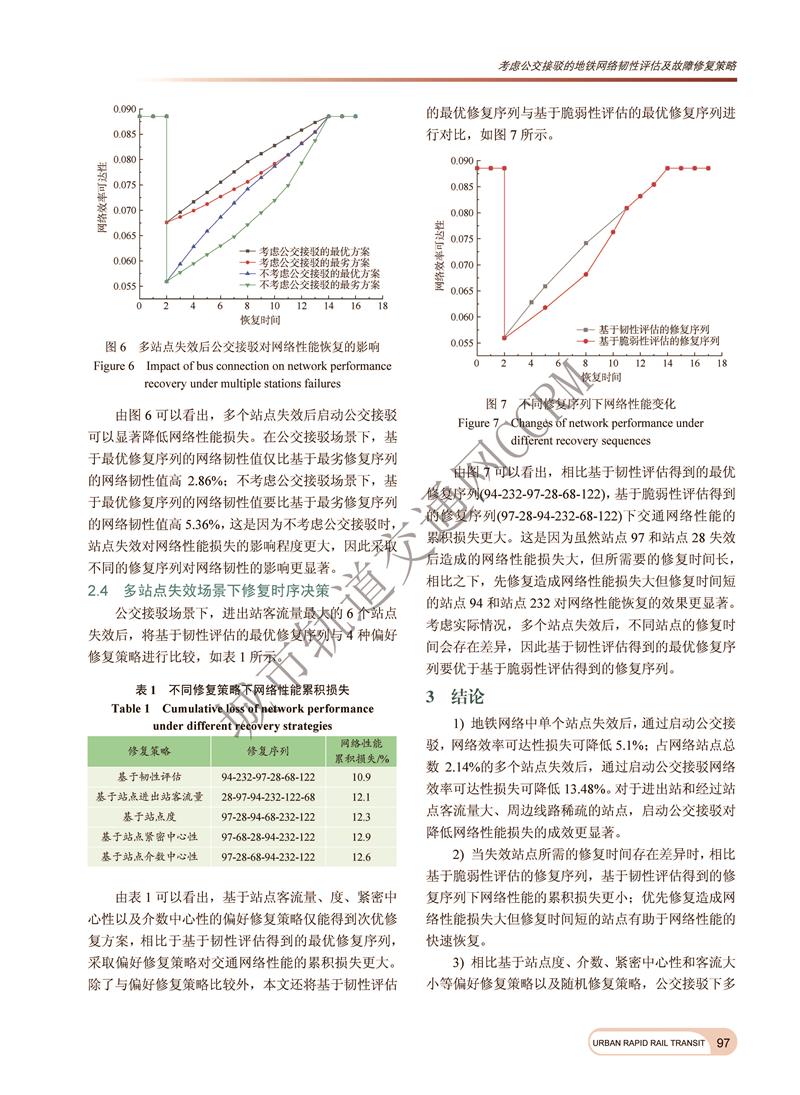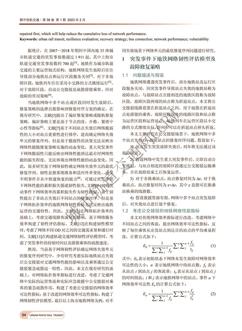 考虑公交接驳的地铁网络韧性评估及故障修复策略