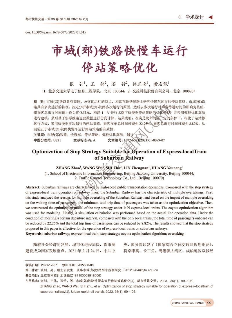 市域(郊)铁路快慢车运行停战策略优化