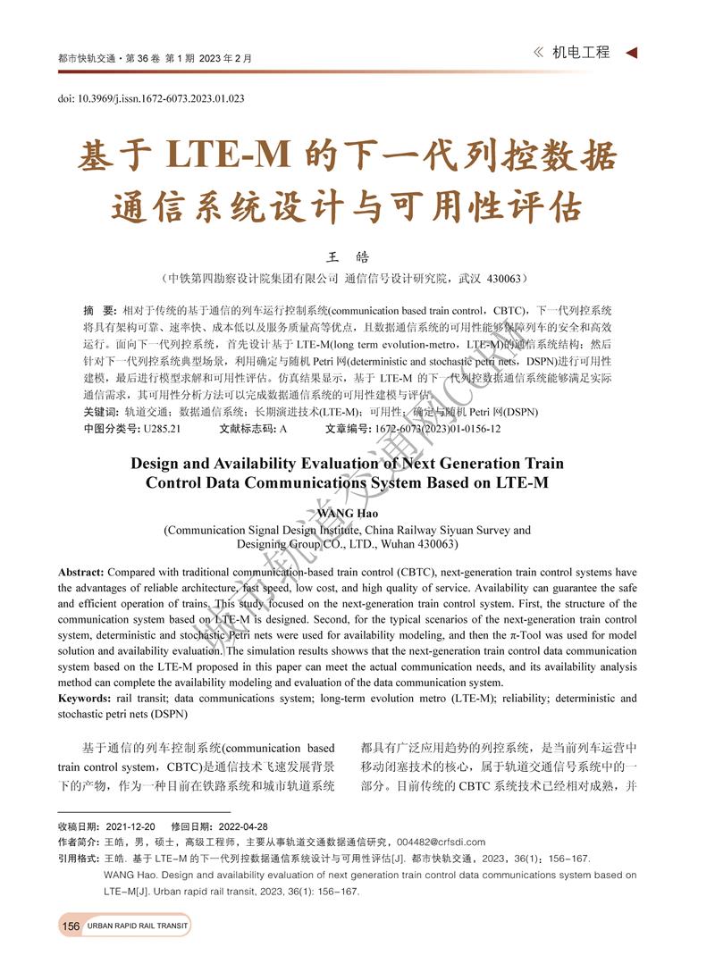 基于LTE-M的下一代列控数据通信系统设计与可用性评估