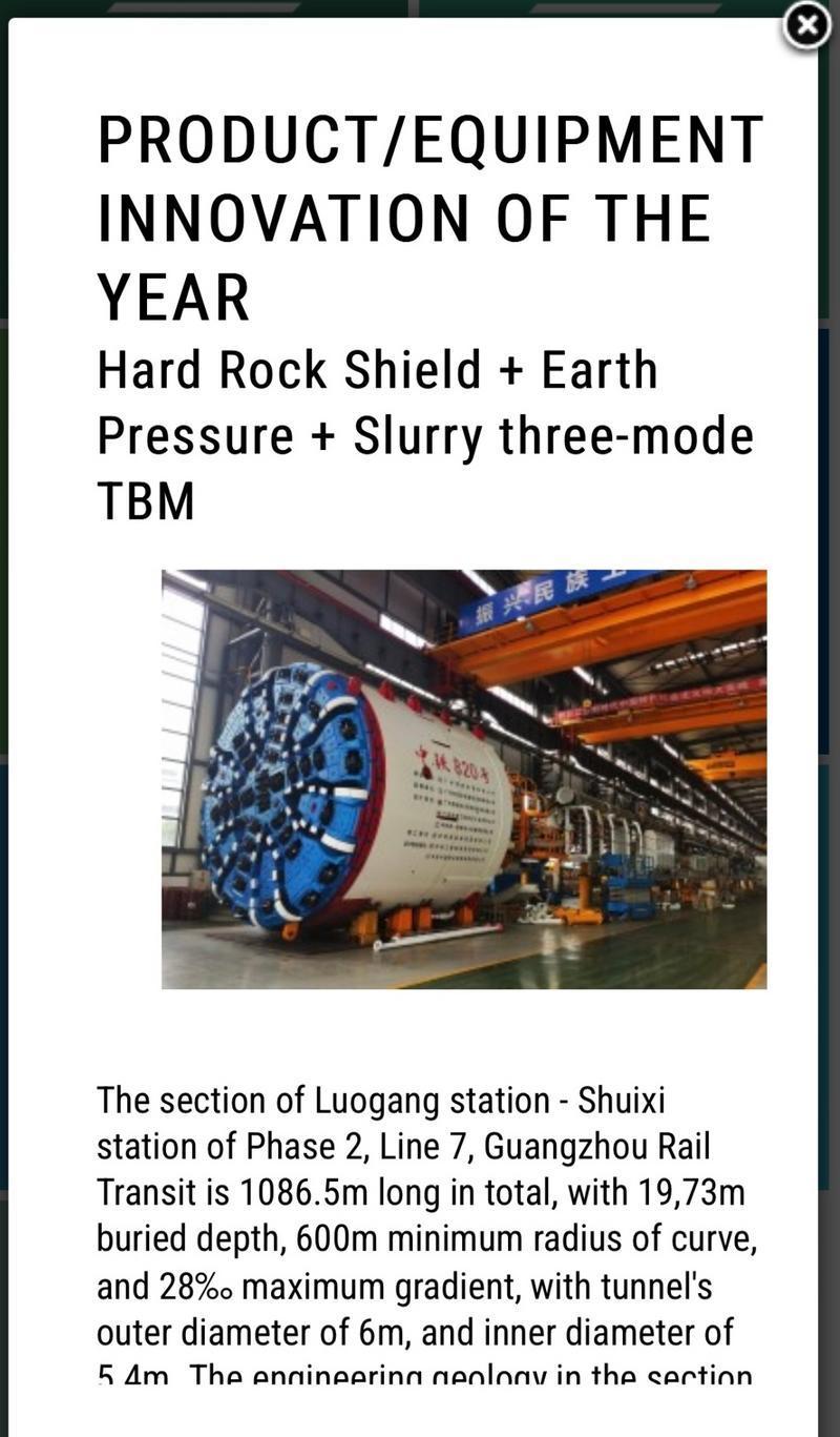 近日,经过全球多个国家和地区的多轮角逐,2023年第九届国际隧道与地下空间协会(ITA)大奖评定并公布了年度获奖名单,在此前入围的20个项目和5位隧道工程师中,最终评选出6个奖项和1位青年隧道工程师。广州地铁七号线二期采用的全球首台“TBM+土压+泥水”三模盾构机脱颖而出,获年度产品/设备创新奖,成为我国3个获奖项目之一。