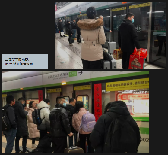 有不少乘客提着礼盒或行李箱,终点站为武汉站的4号线上,带着行李箱的人更多。