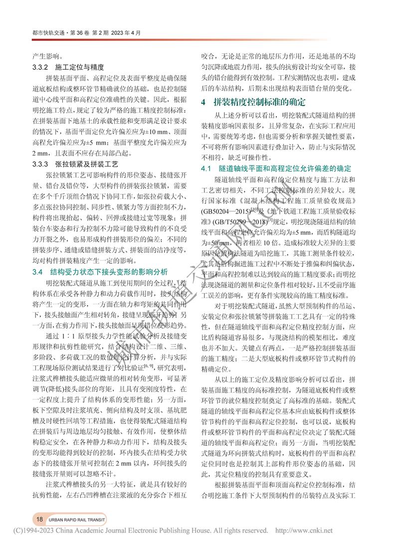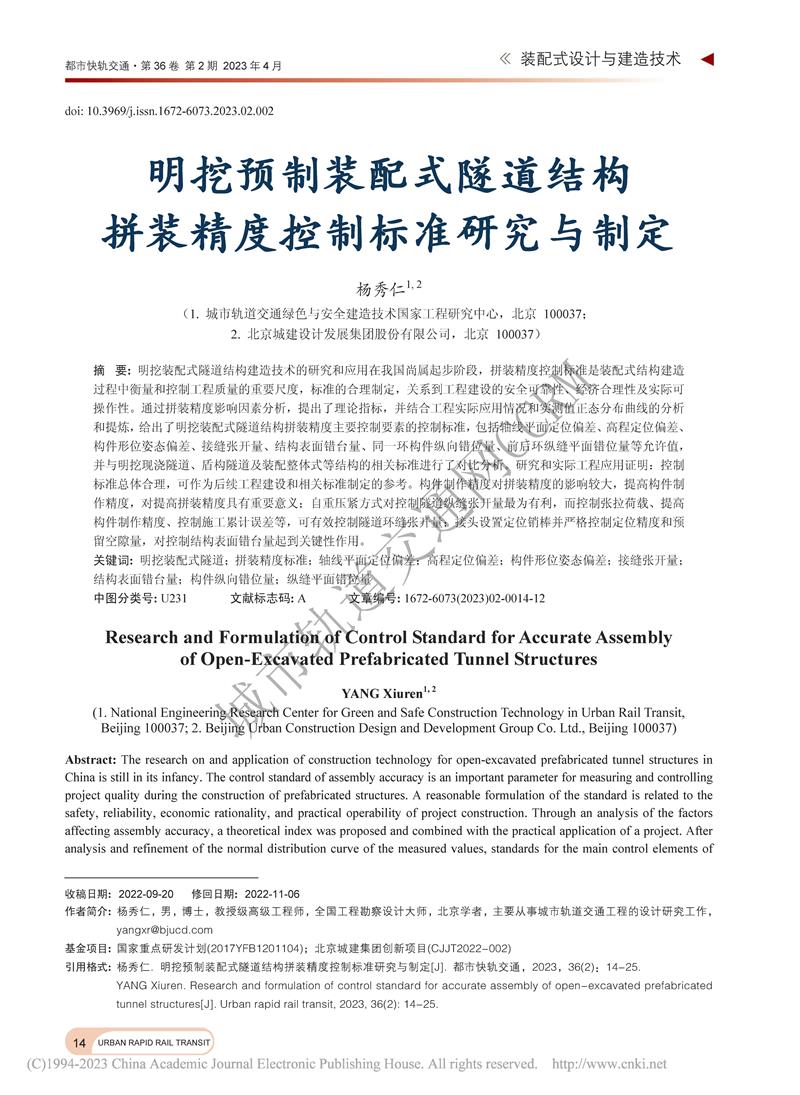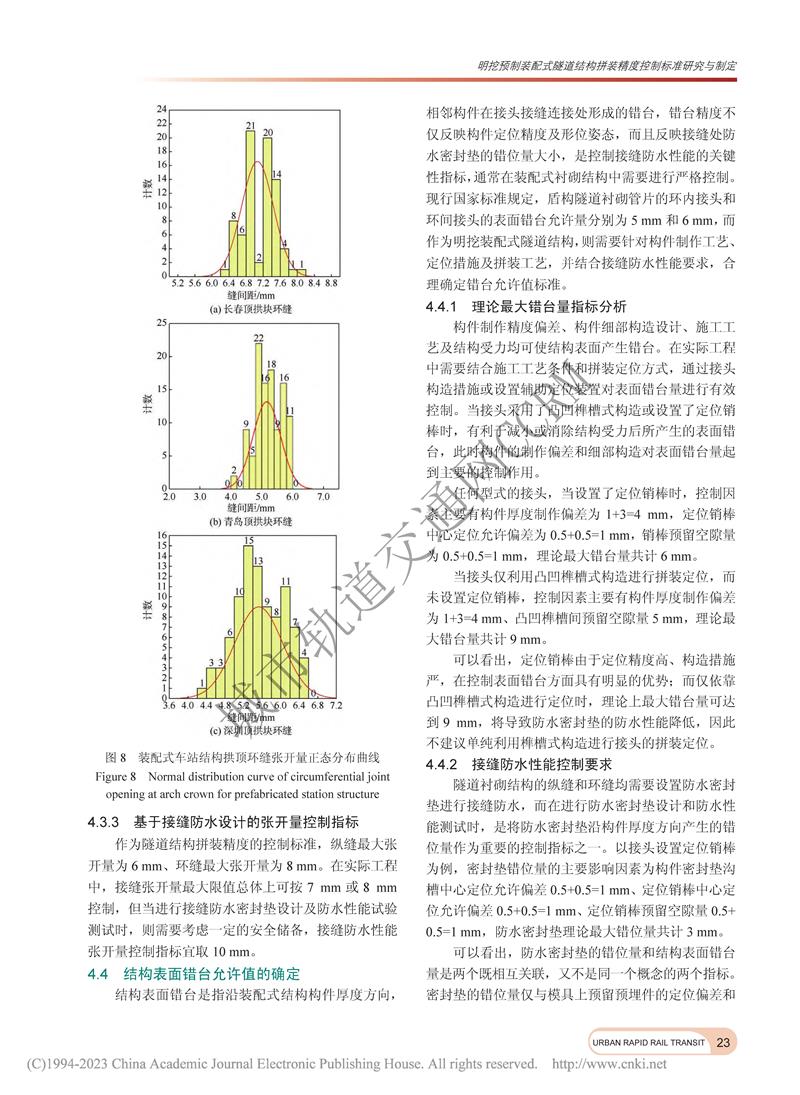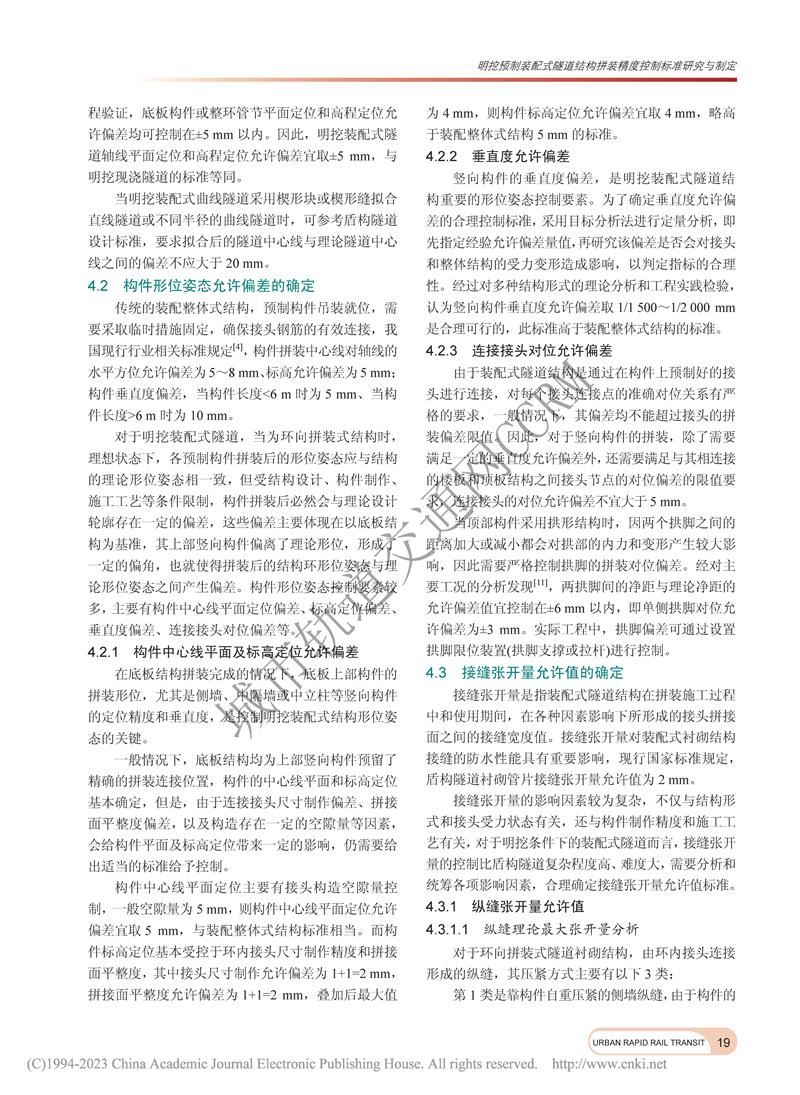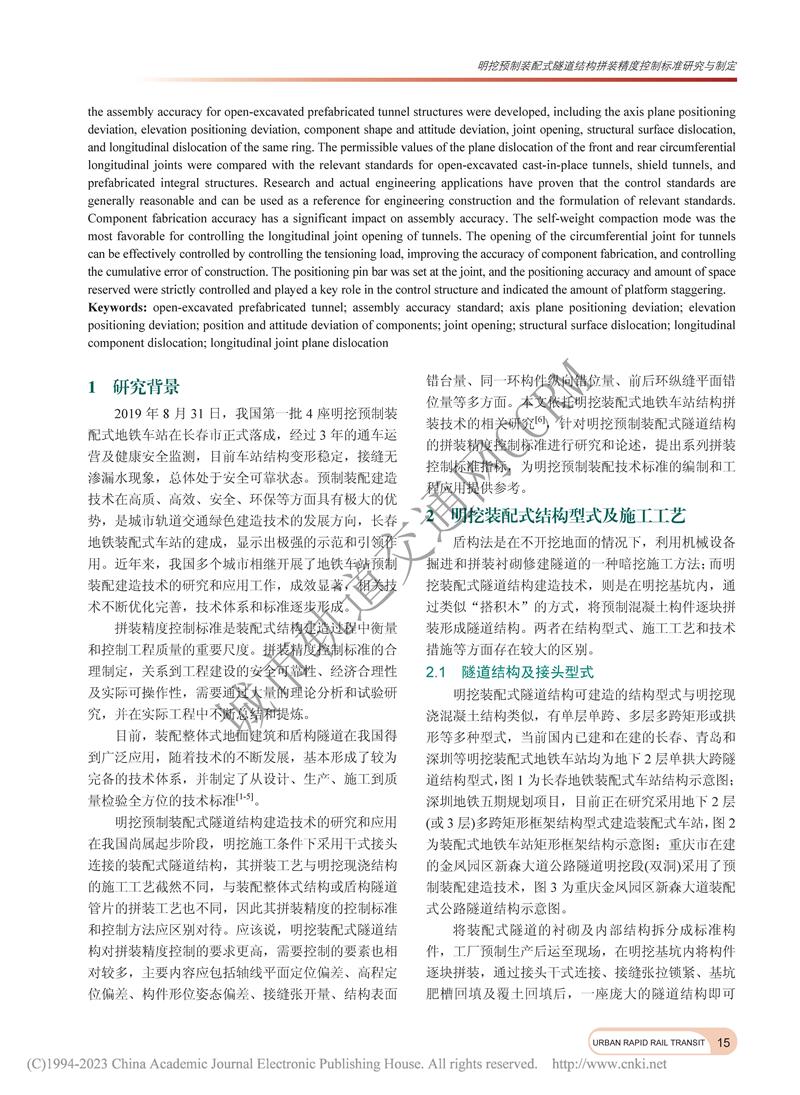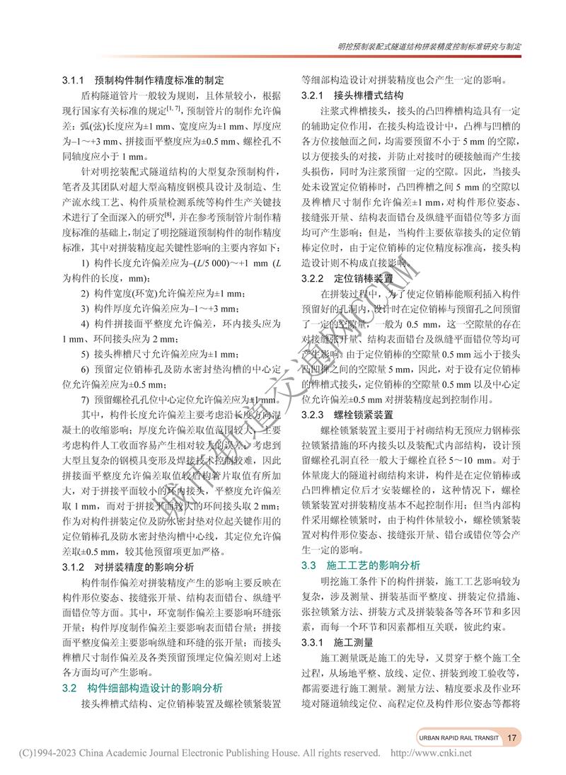明挖预制装配式隧道结构拼装精度控制标准研究与制定
