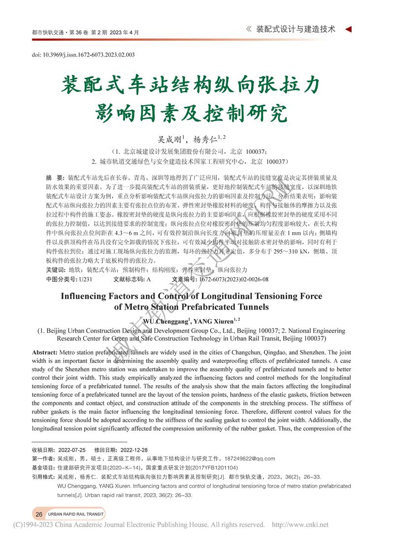 上一条:明挖预制装配式隧道结构拼装精度控制标准研究与制定