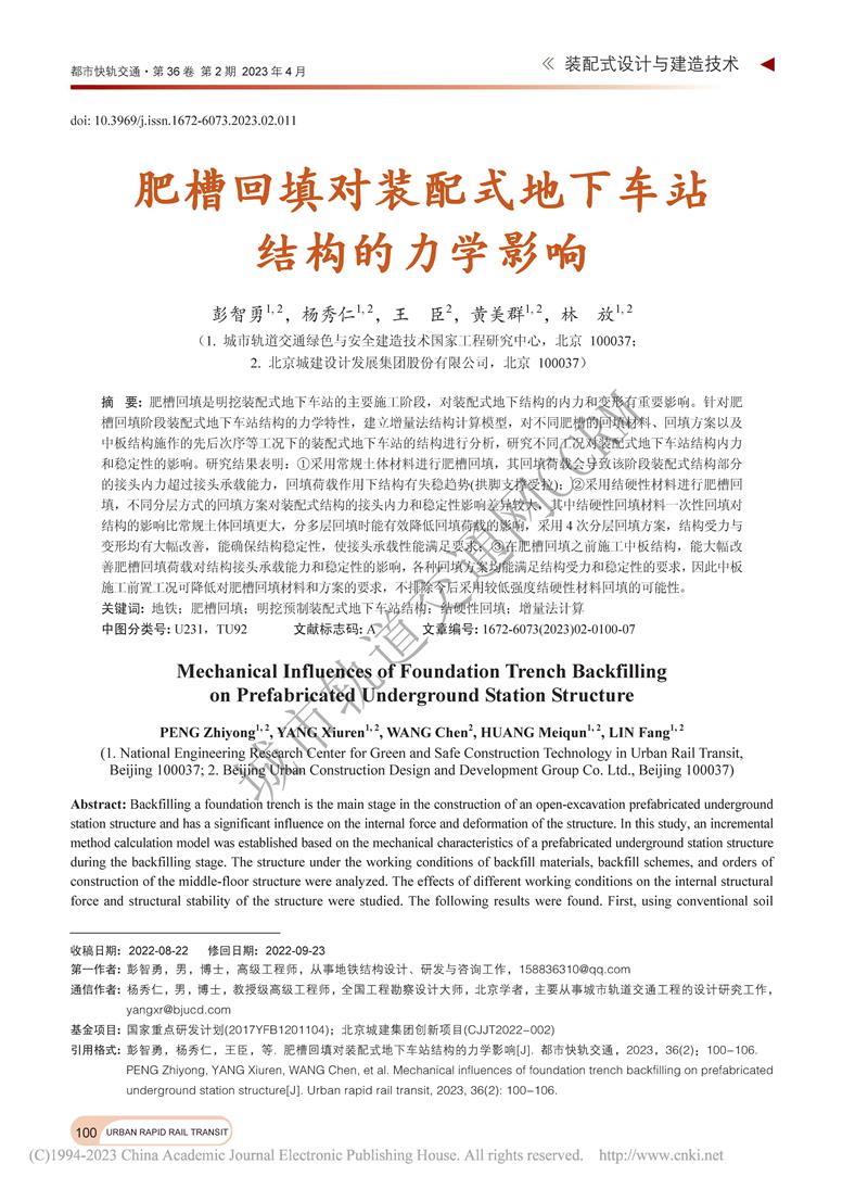 上一条:装配式地铁车站结构接缝防水关键技术研究与应用