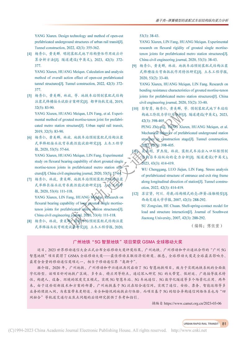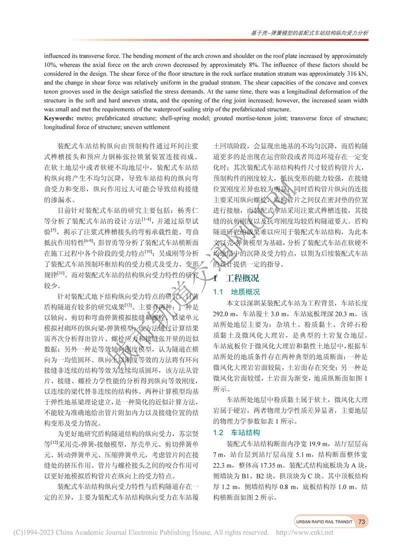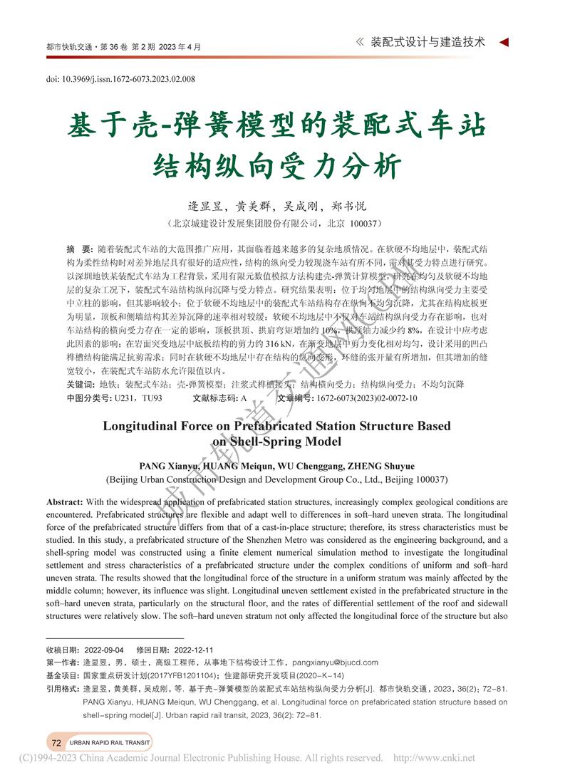 基于壳-弹簧模型的装配式车站结构纵向受力分析