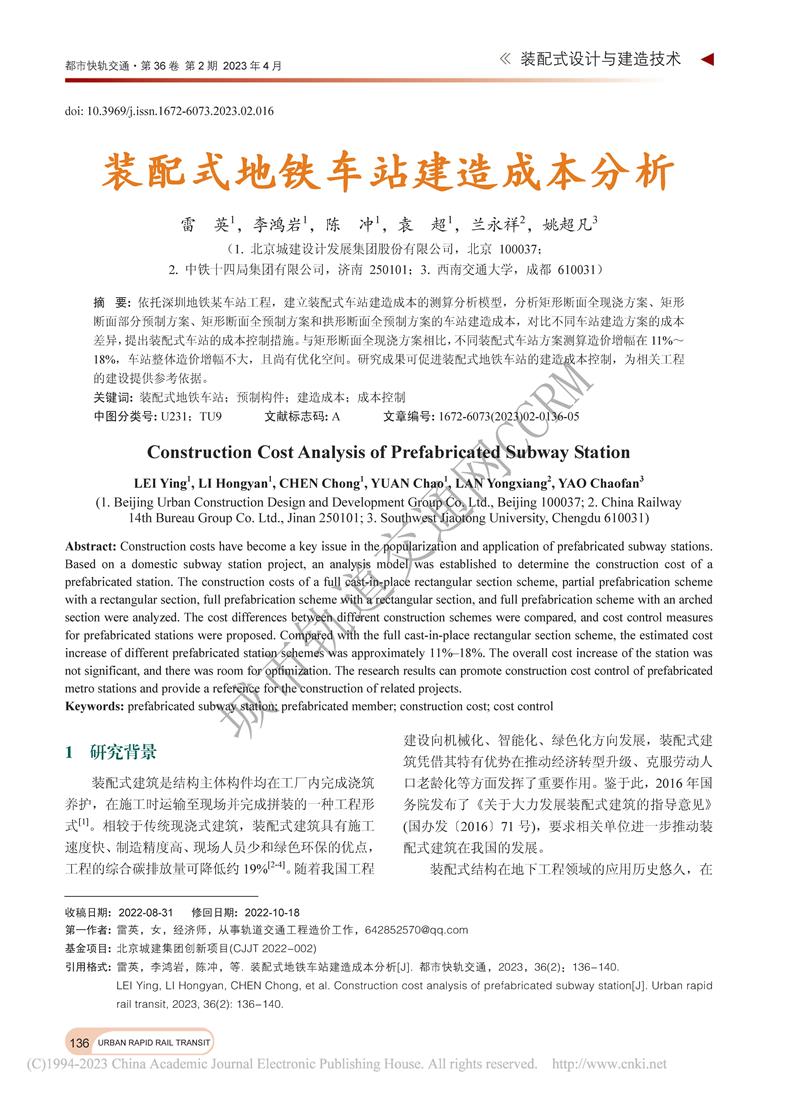 装配式地铁车站建造成本分析