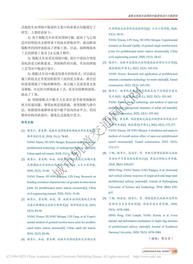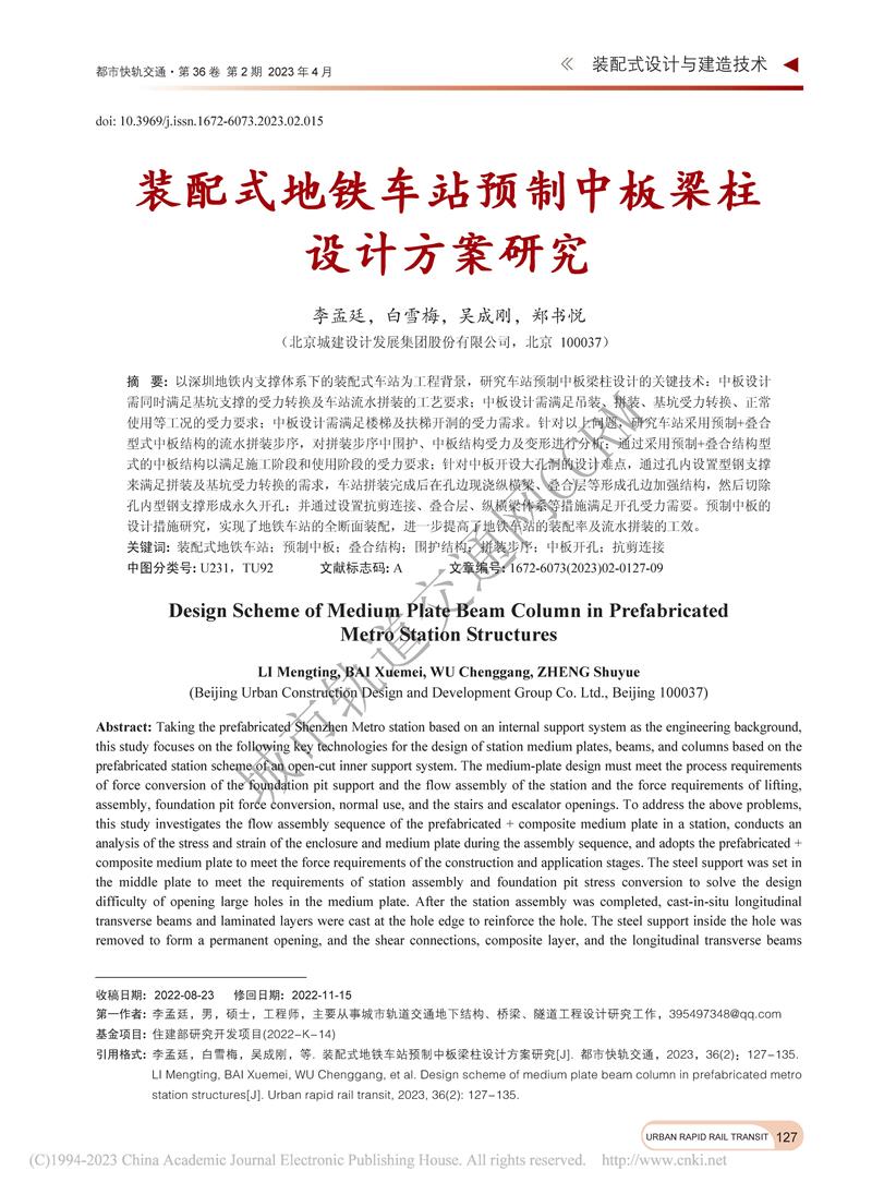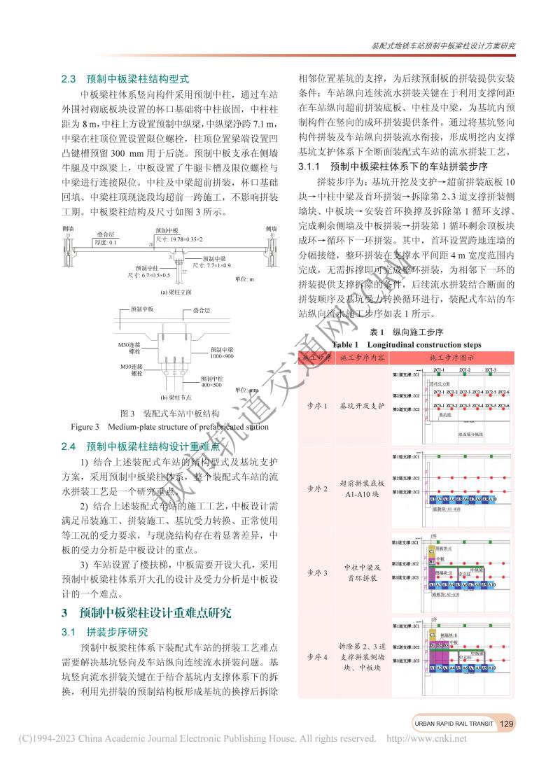 装配式地铁车站预制中板梁柱设计方案研究