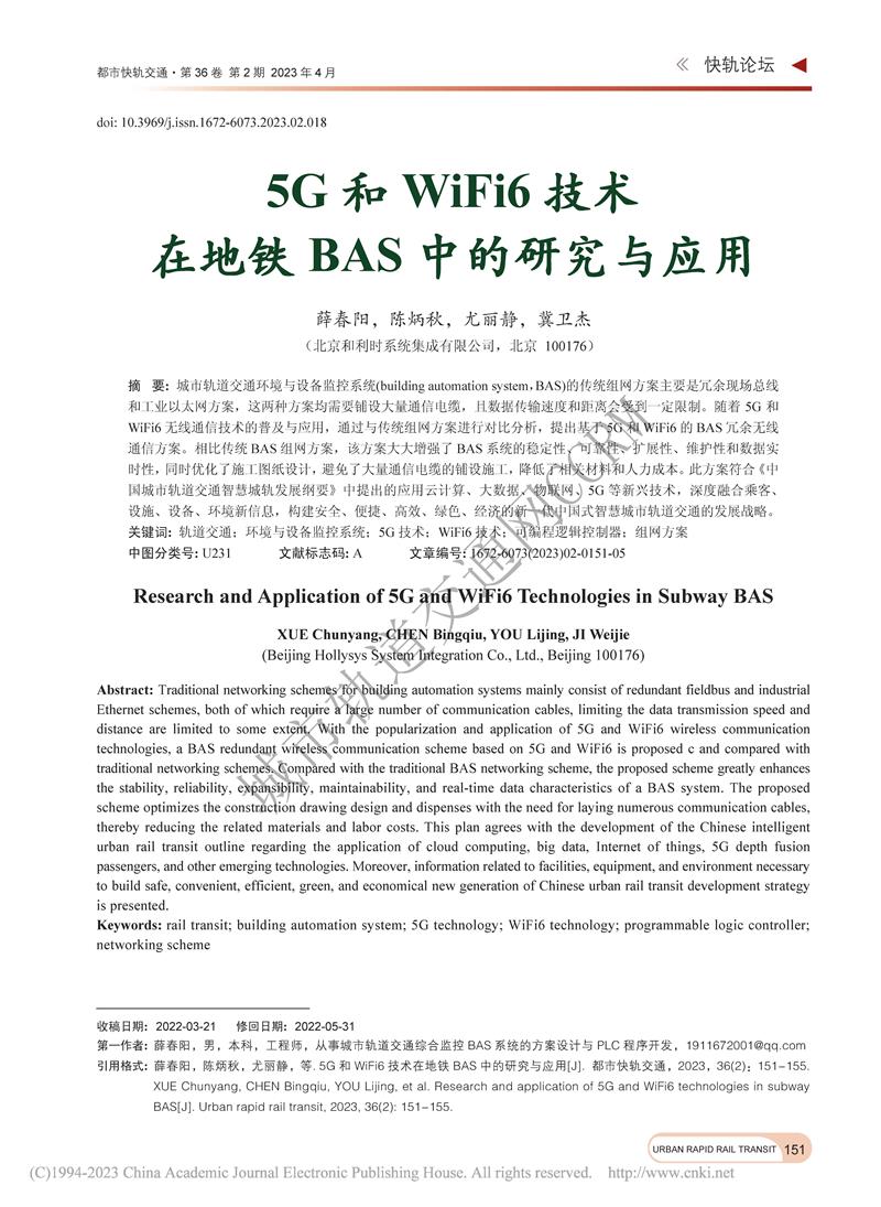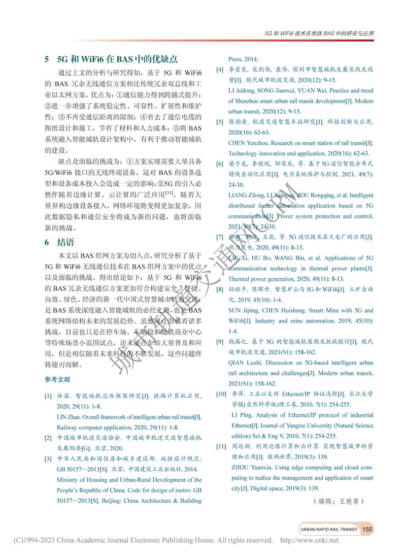 5G和Wifi6技术在地铁BAS中的研究与应用