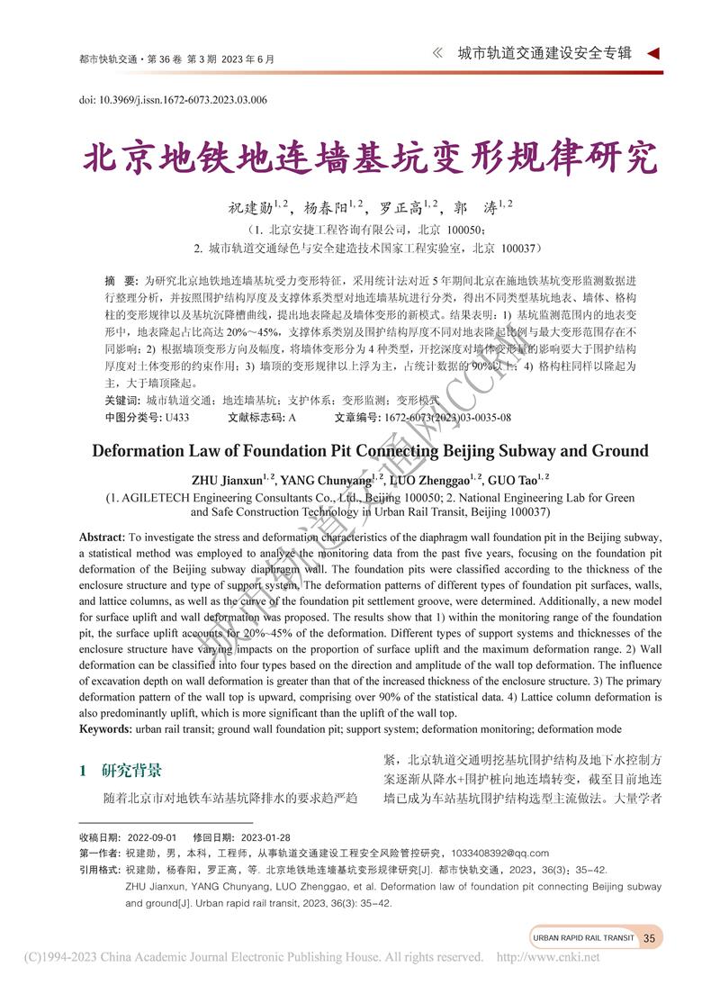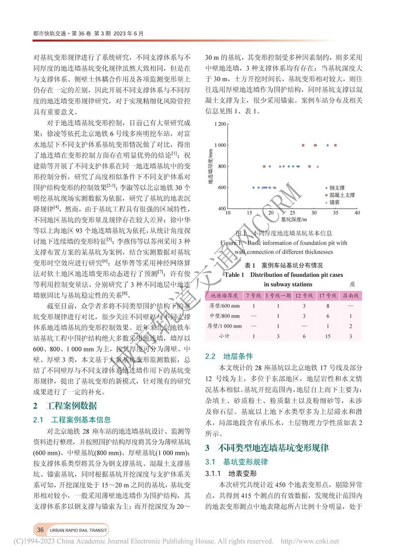 北京地铁地连墙基坑变形规律研究