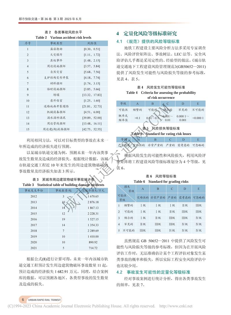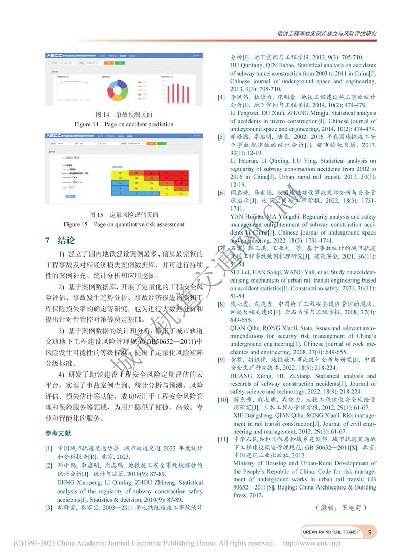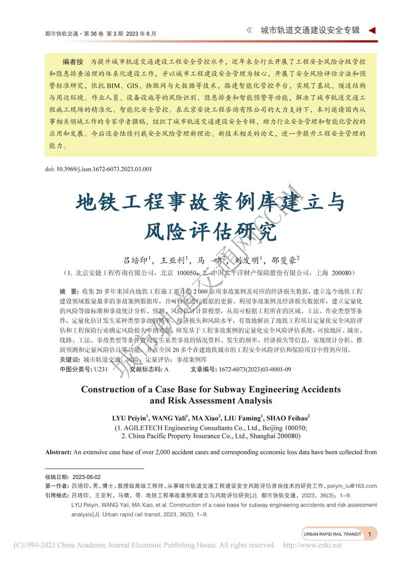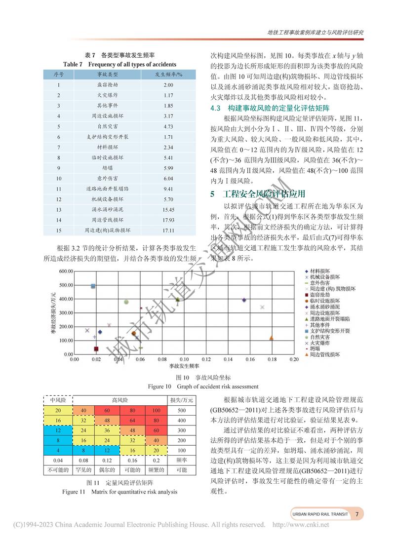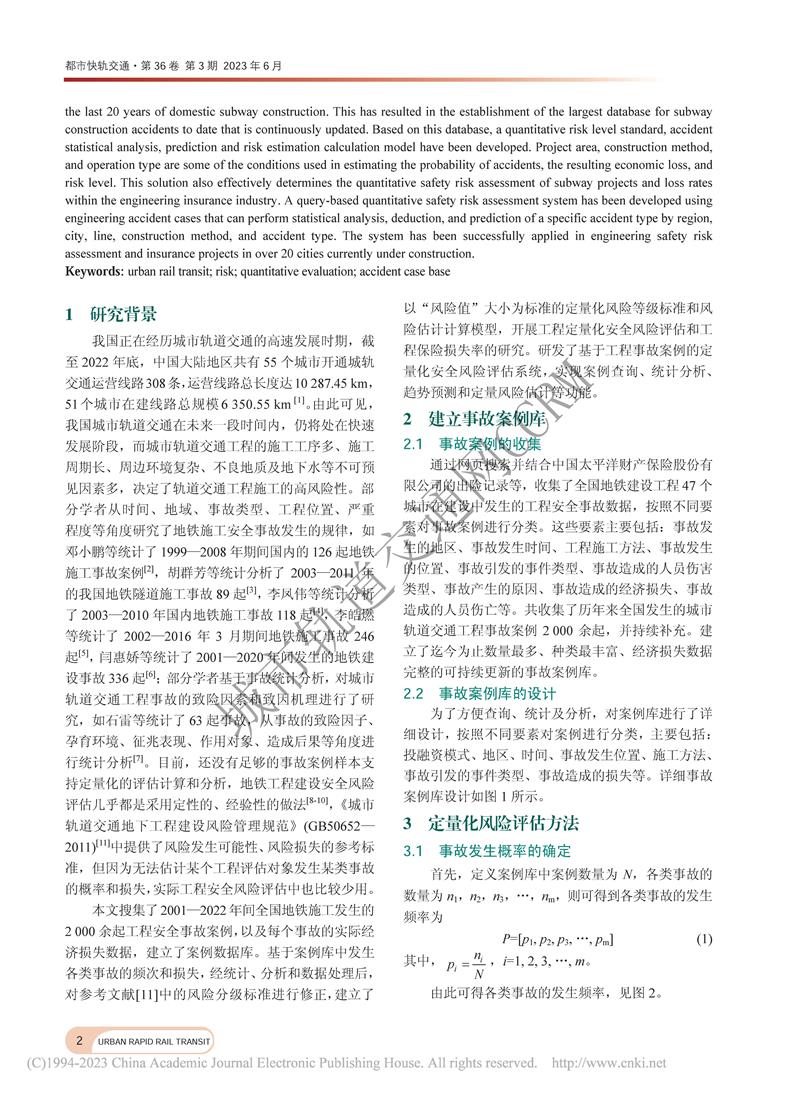 地铁工程事故案例库建立与风险评估研究
