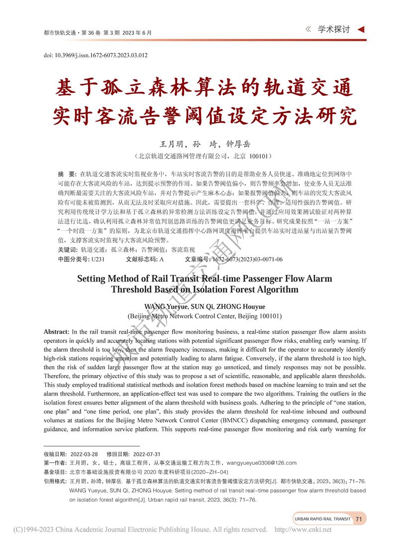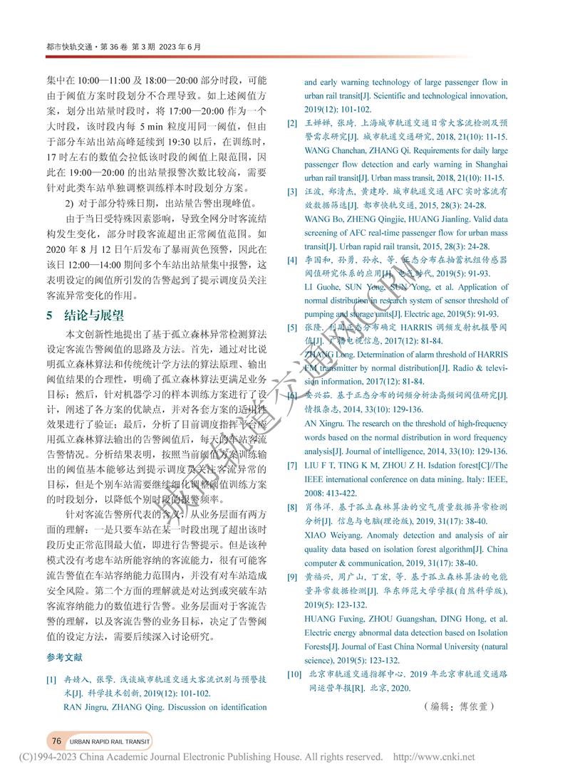 基于孤立森林算法的轨道交通实时客流告警阈值设定方法研究