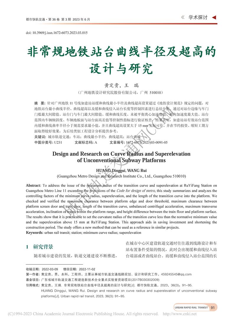 非常规地铁站台曲线半径及超高的设计与研究
